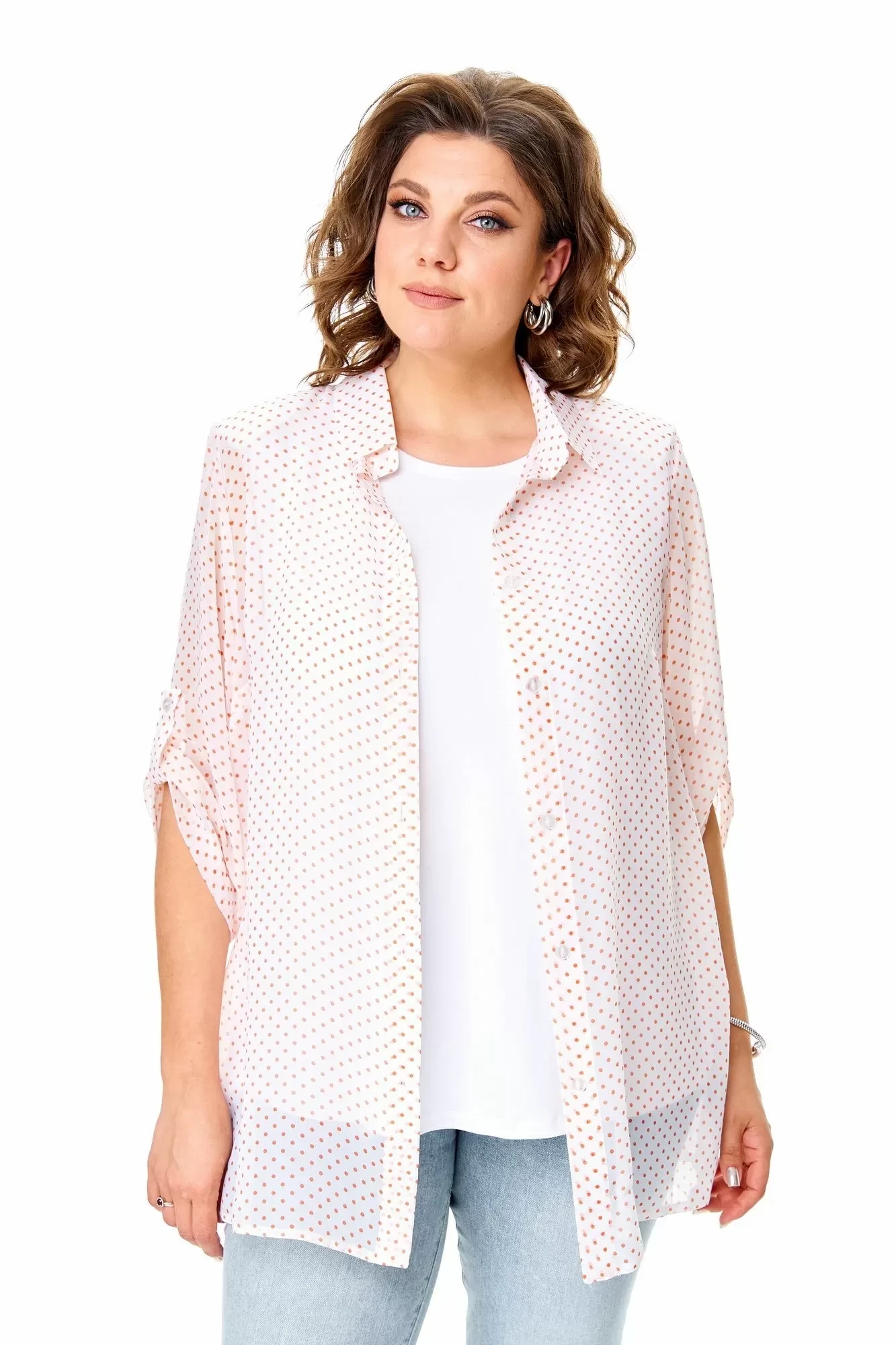 Ткань – легкий воздушный дышащий шифон, просвечивается, с принтом в мелкий оранжевый горох.