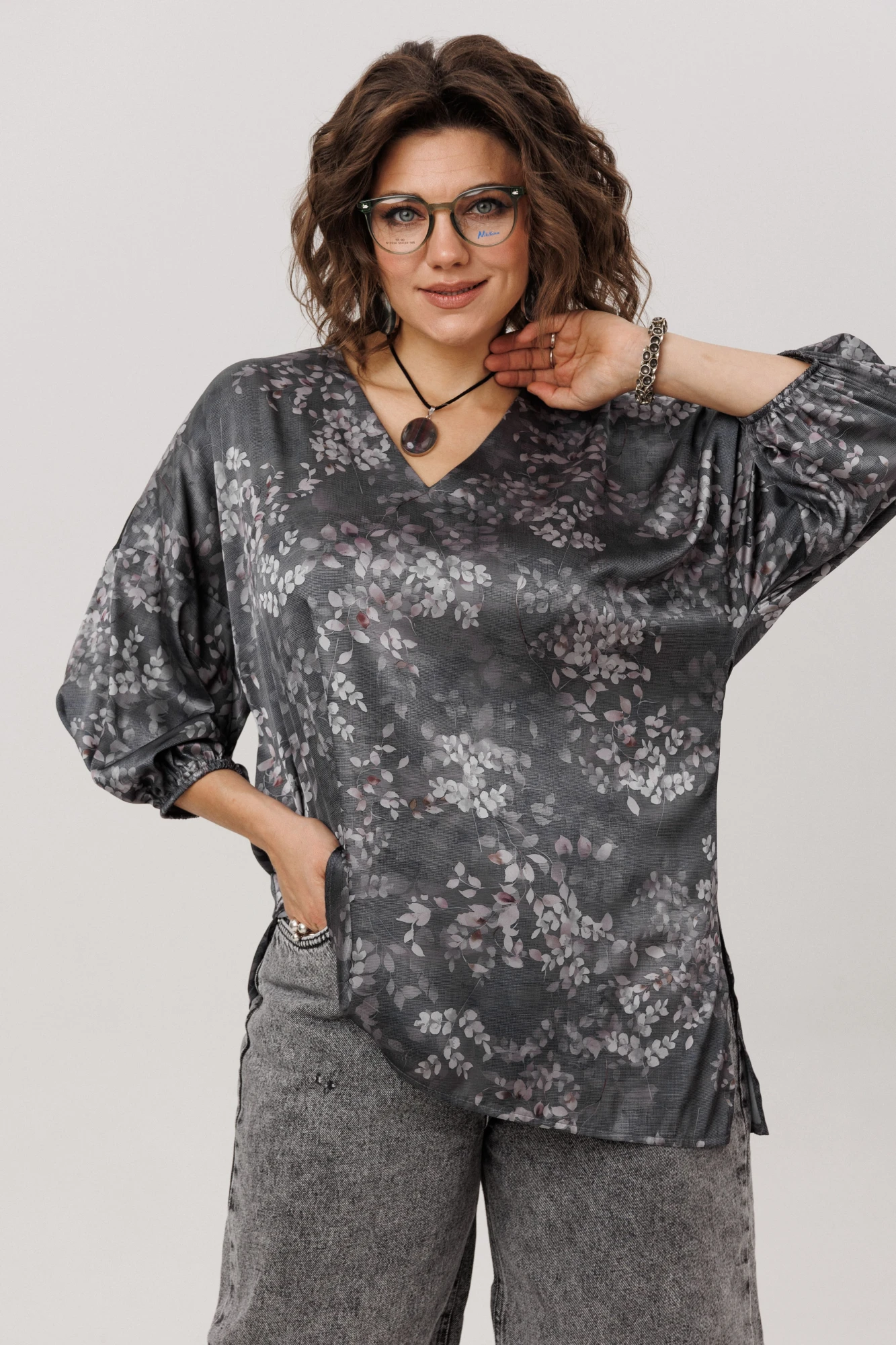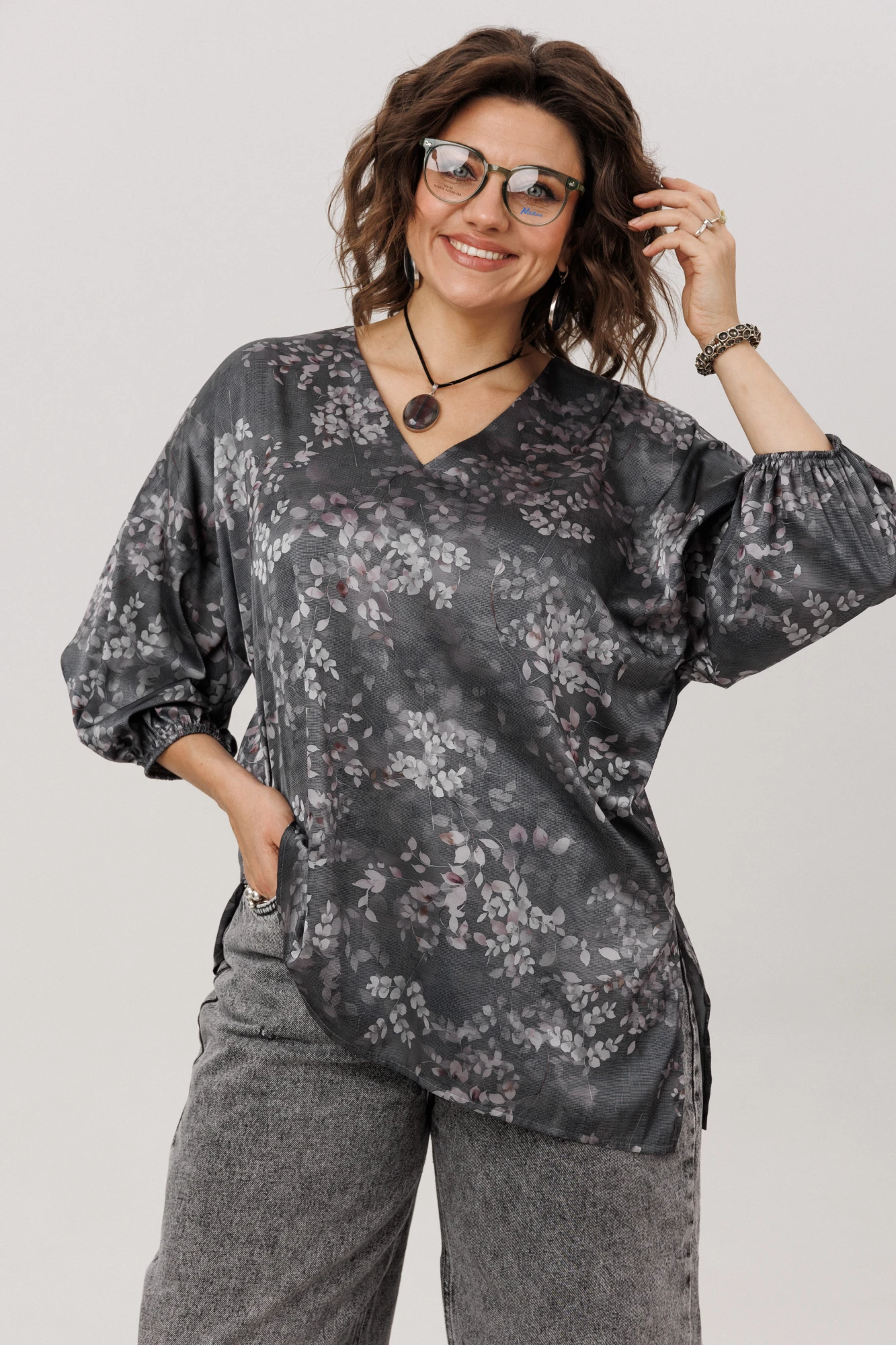 Блузка Anelli 1665.1 графитовый гербарий