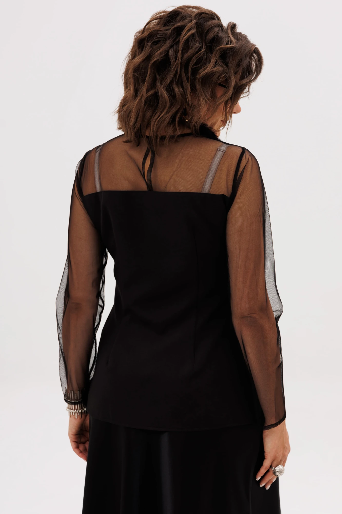 Детали из сетки черного цвета и разрезы по бокам создают соблазнительную игру, формируя загадочный и невероятно притягательный образ. Потайная молния скрыта от посторонних глаз в боковом шве.