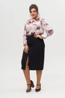 54,56Рукав втачной, длинный, свободный, собран на широкую манжету, застегивающуся на петли и пуговицы. Вырез горловины аккуратной округлой формы. Простой силуэт в сочетании с красивымпринтом безупречно подчеркнет ваши достоинства.