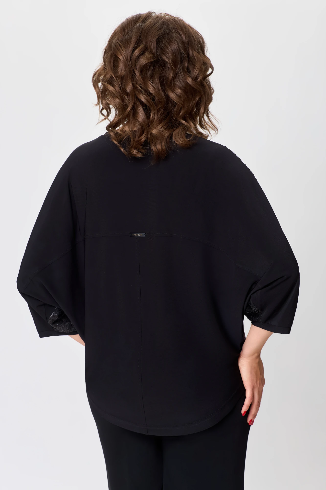 Изделие свободного кроя, длиной до линии бёдер, рукава цельнокроеные, слегка заужены к низу, длиной 3/4 с бейкой по низу.