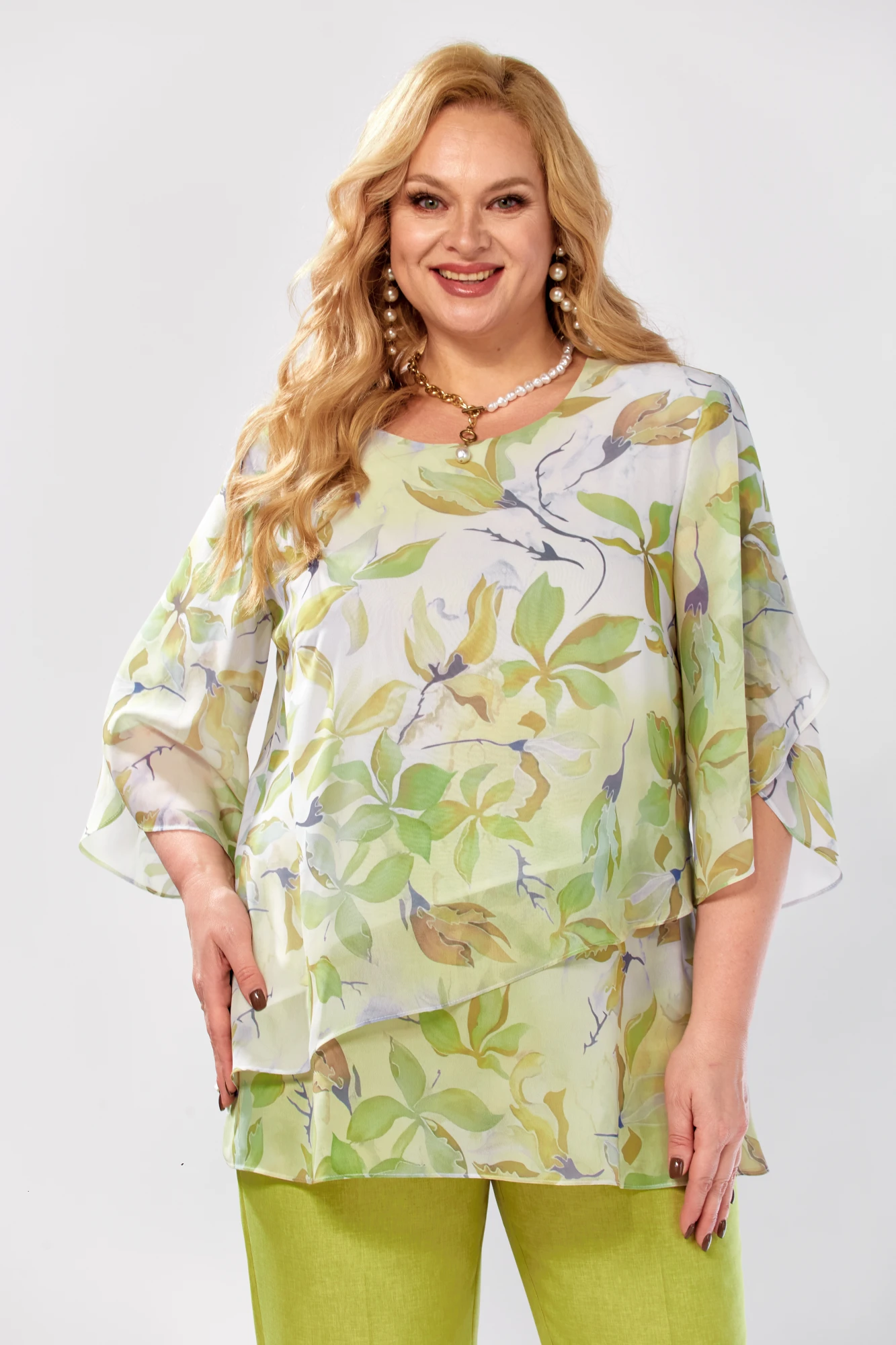 Воздушная невесомая блуза, для тех, кто ценит легкость и воздушность, выполнена из шифона, с отлетной деталью, что создает приятное ощущение свободы в движении. На полочке нагрудные вытачки, вырез горловины аккуратной округлой формы. Рукав втачной, свободный. Блуза на подкладке.