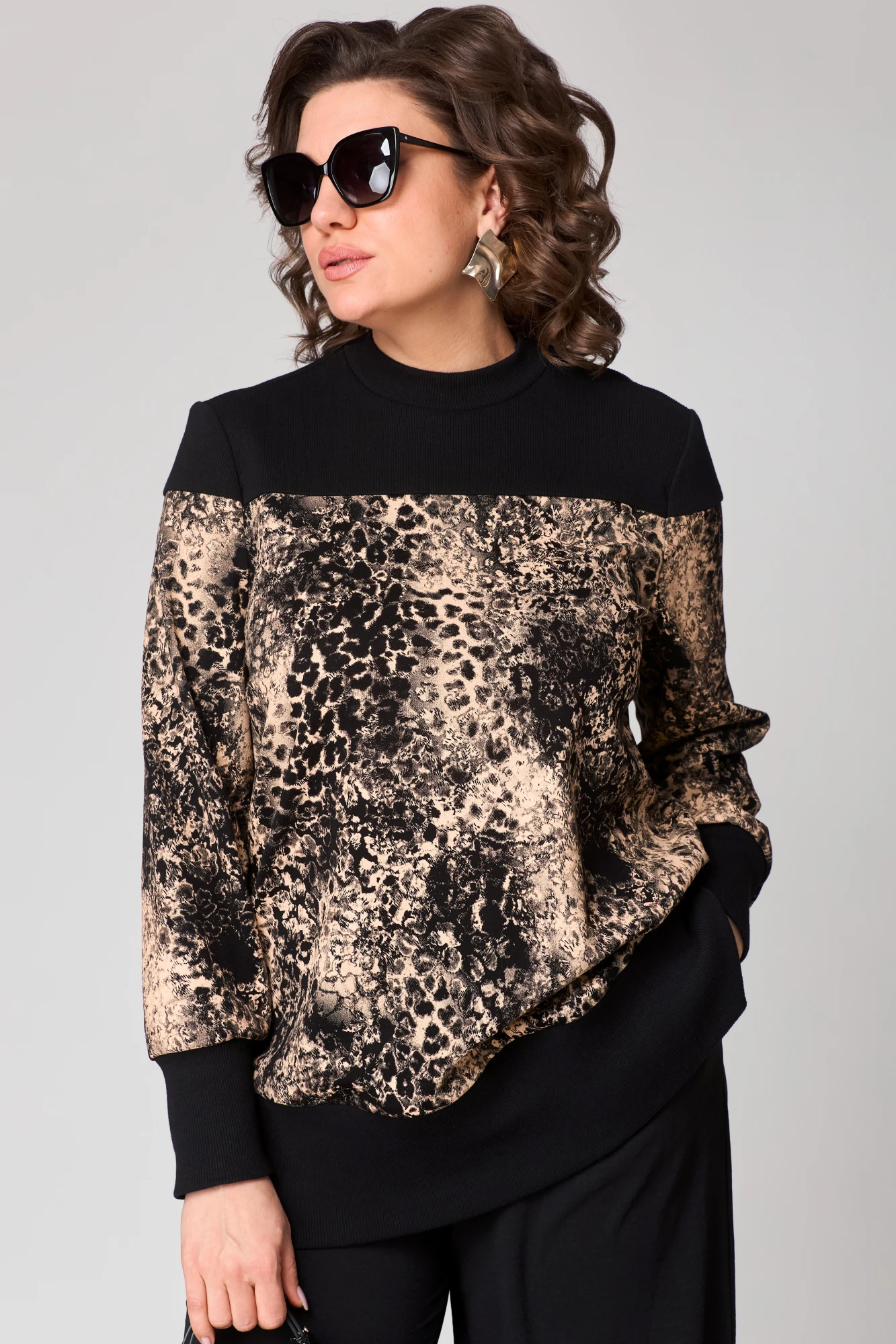 Блузка EVA GRANT 7069Е кофейная абстракция