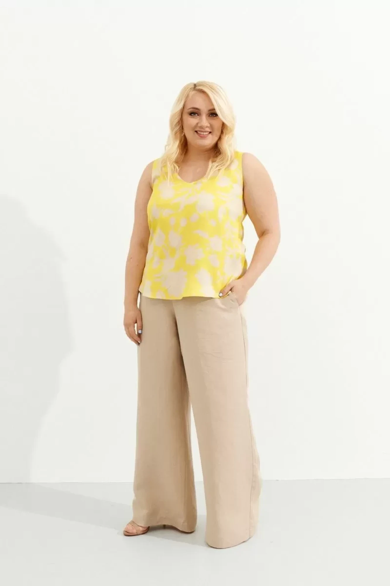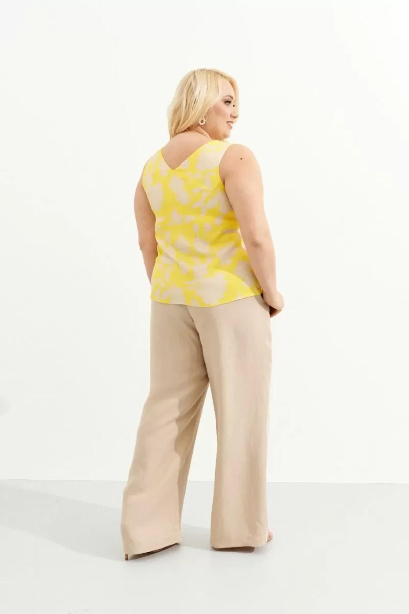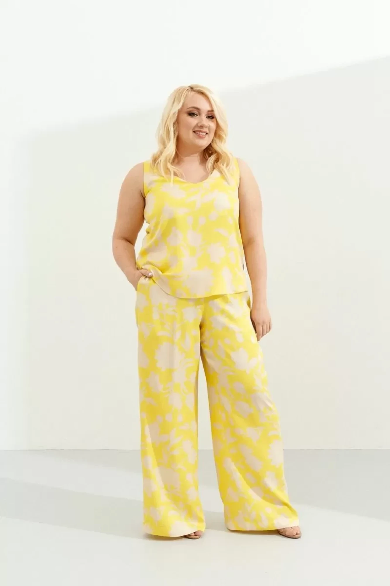 Но это еще не все! Ткань, из которой сделан эта блузка, – это 100% вискоза с блеском, что делает его еще более роскошным и привлекательным. Рисунок желто-бежевый, что придает ему легкость и воздушность, что идеально подходит для летних дней.