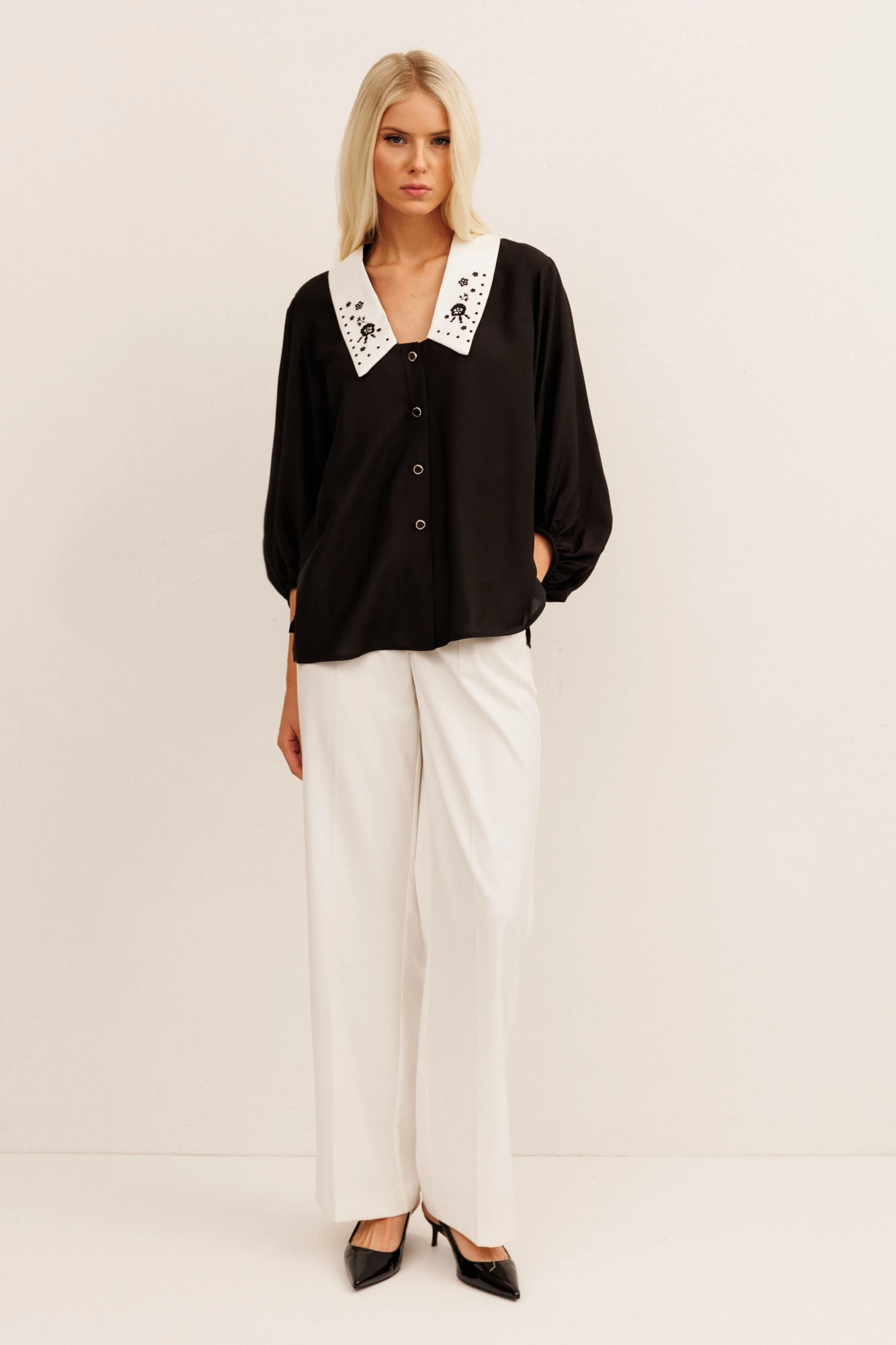 - съёмный воротник с дизайнерской вышивкой