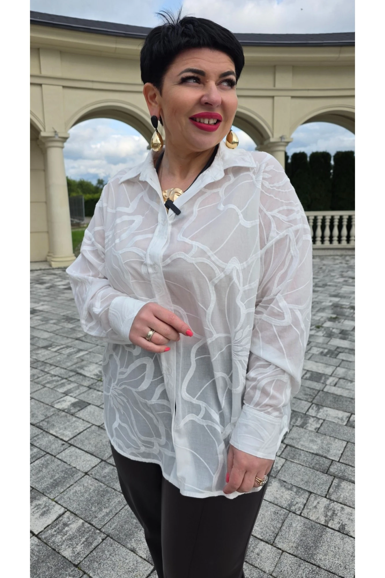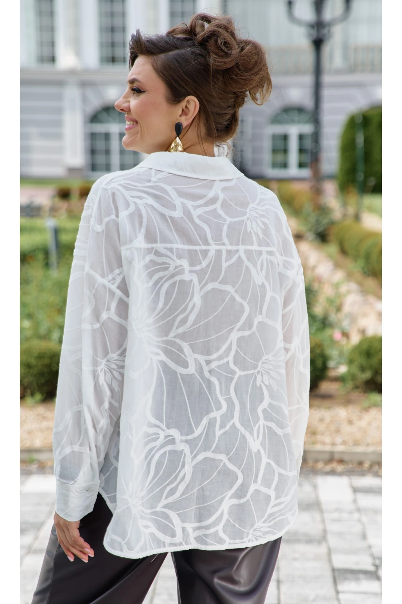 52, 54 ,56,58,60,62Длина блузки по спинке 73 см (р 52-56), 75 см (р 58-62). Длина рукава блузки 75,5 см (р 52-56), 76,5 см (р 58-62).