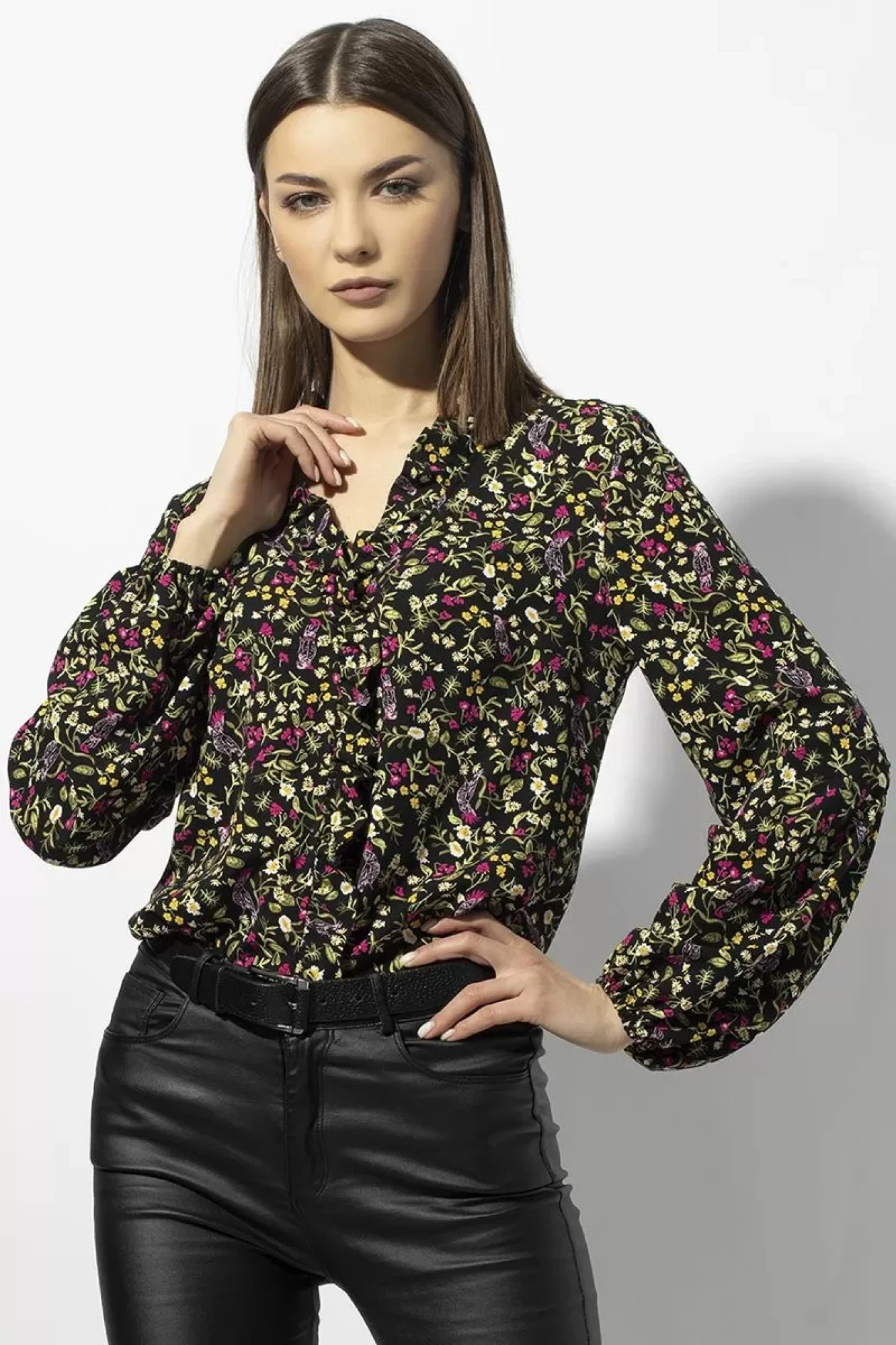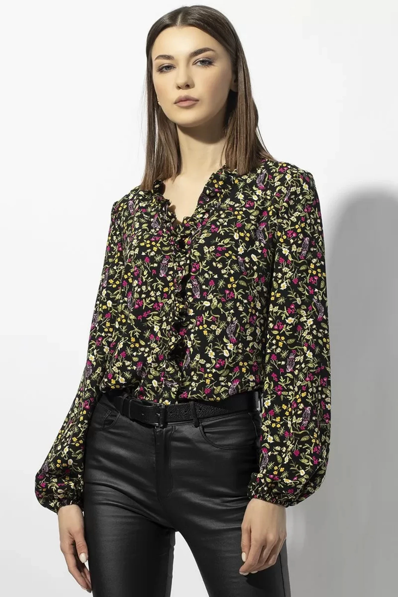 По центру переда и горловине вставлена рюша.