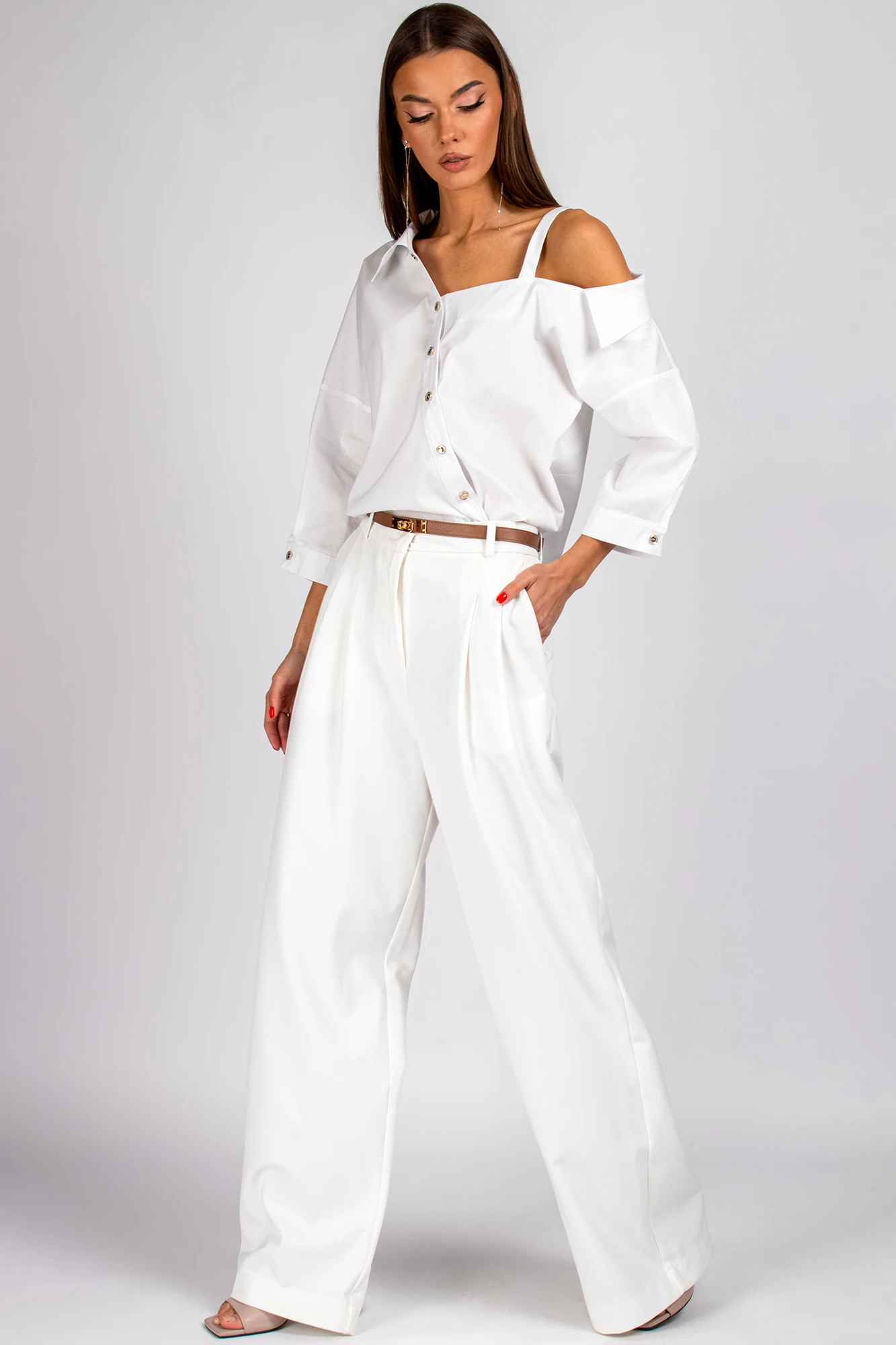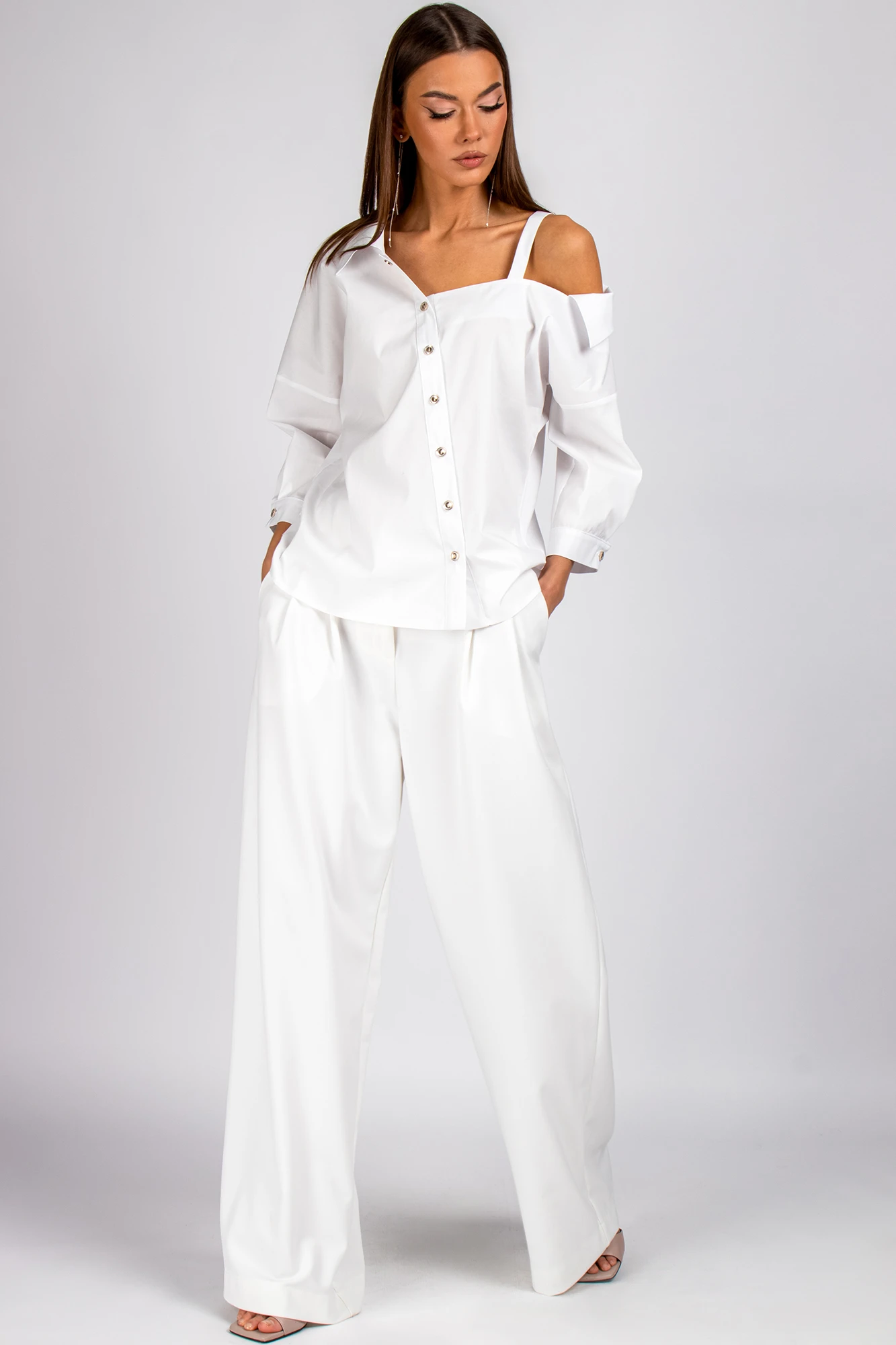 Горловина ассиметричная с воротником и бретелей на левом плече.
