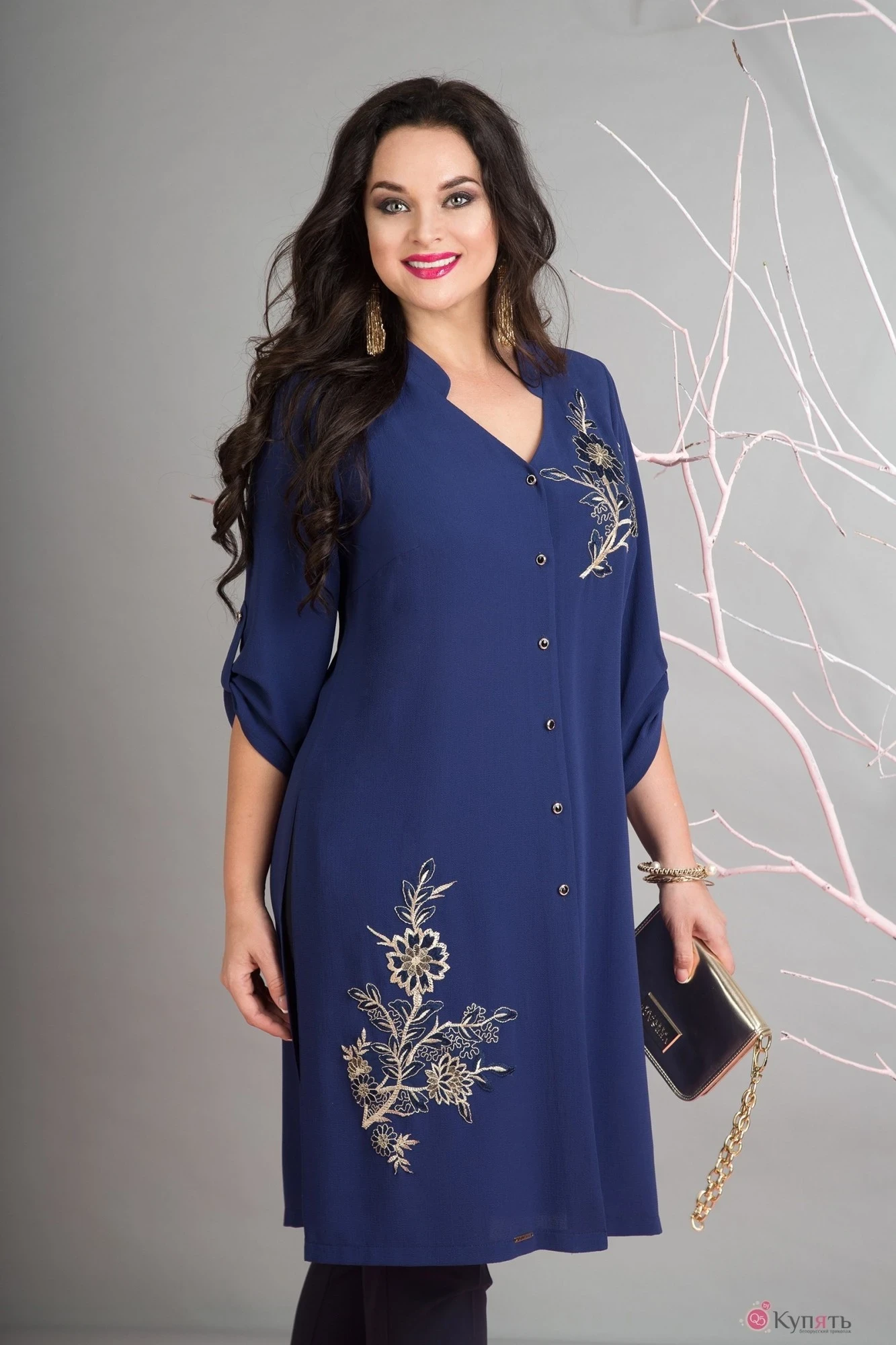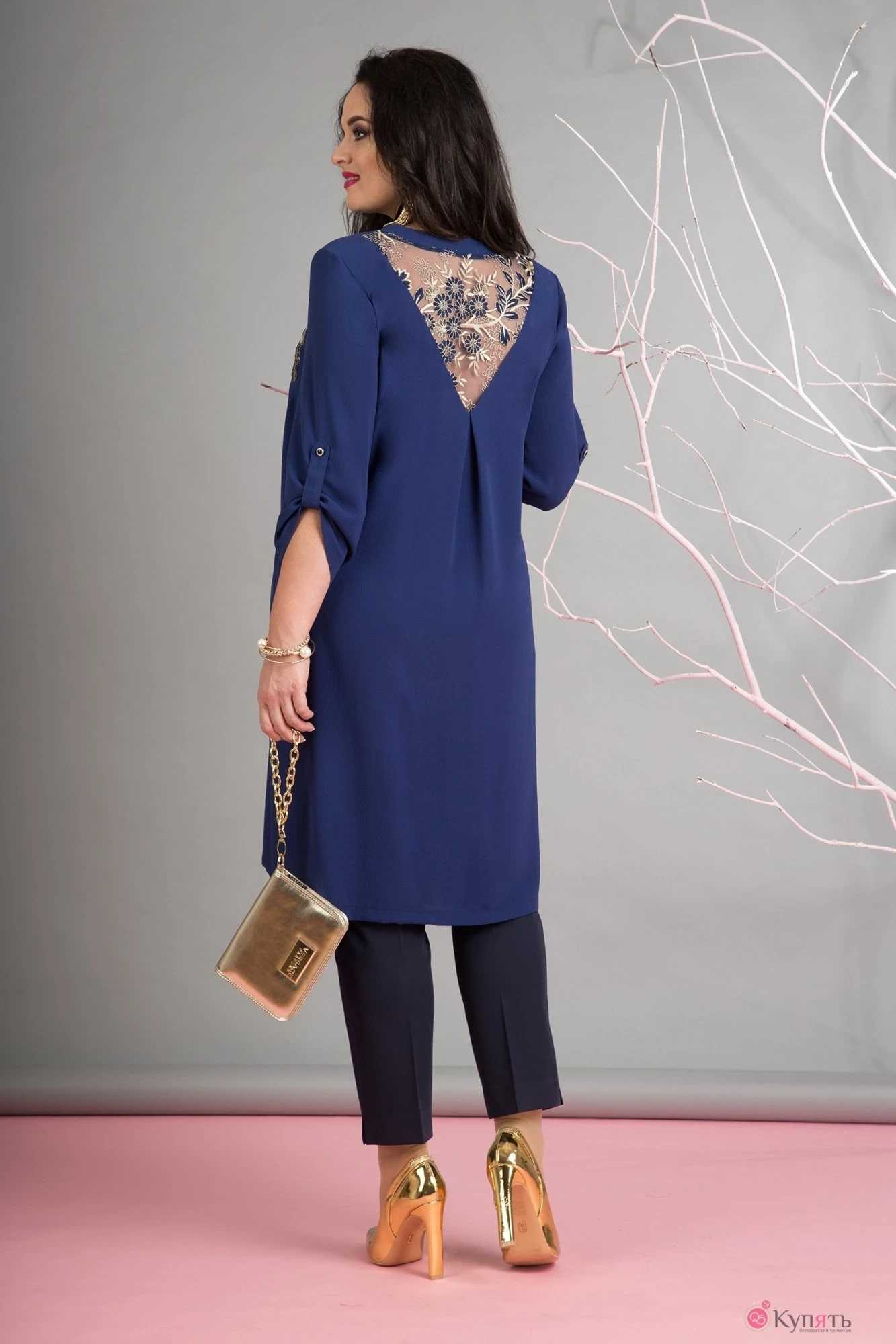 Стильная удлинённая рубашка, выполнена из шифоновой ткани с декоративной аппликация в виде цветочной вышивки. Модель прямого силуэта, с V-образной линией горловины на декоративных планках. Застежка центральная на петли и пуговицы. Рукав втачной, рубашечного типа, длиной 3/4ти с декоративной патой. Изюминкой модели служит декоративная спинка с кружевной кокеткой, с заложенной складкой по центру. Данная модель легко подойдет под однотонные легинсы, бриджи и брюки. Великолепный вариант в весенне-летний сезон.