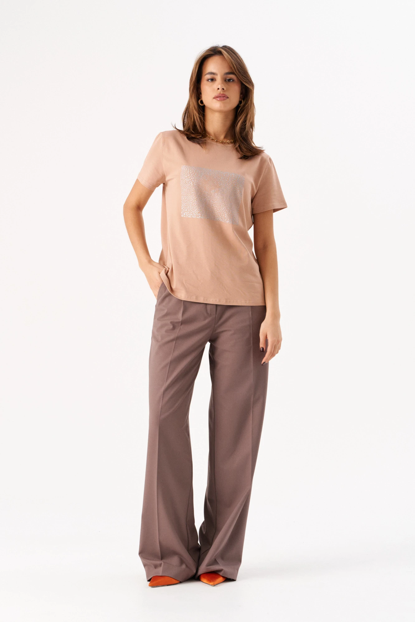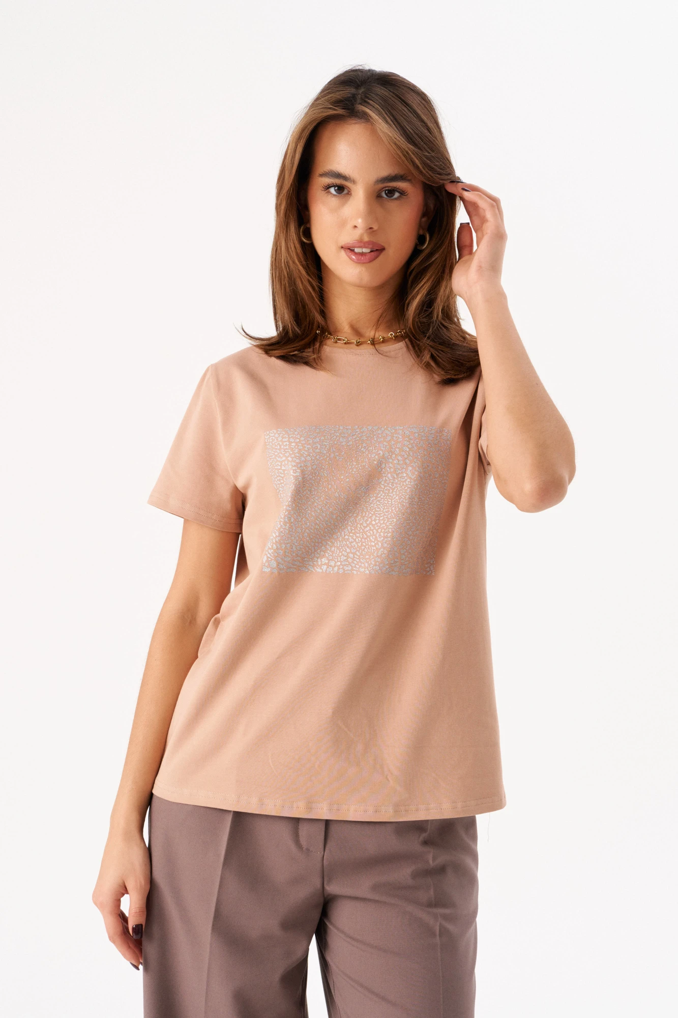 Эта футболка станет отличным дополнением к вашему гардеробу, подчеркивая ваш вкус и стиль. Она идеально сочетается с различными аксессуарами и обувью, создавая завершенный и гармоничный образ."