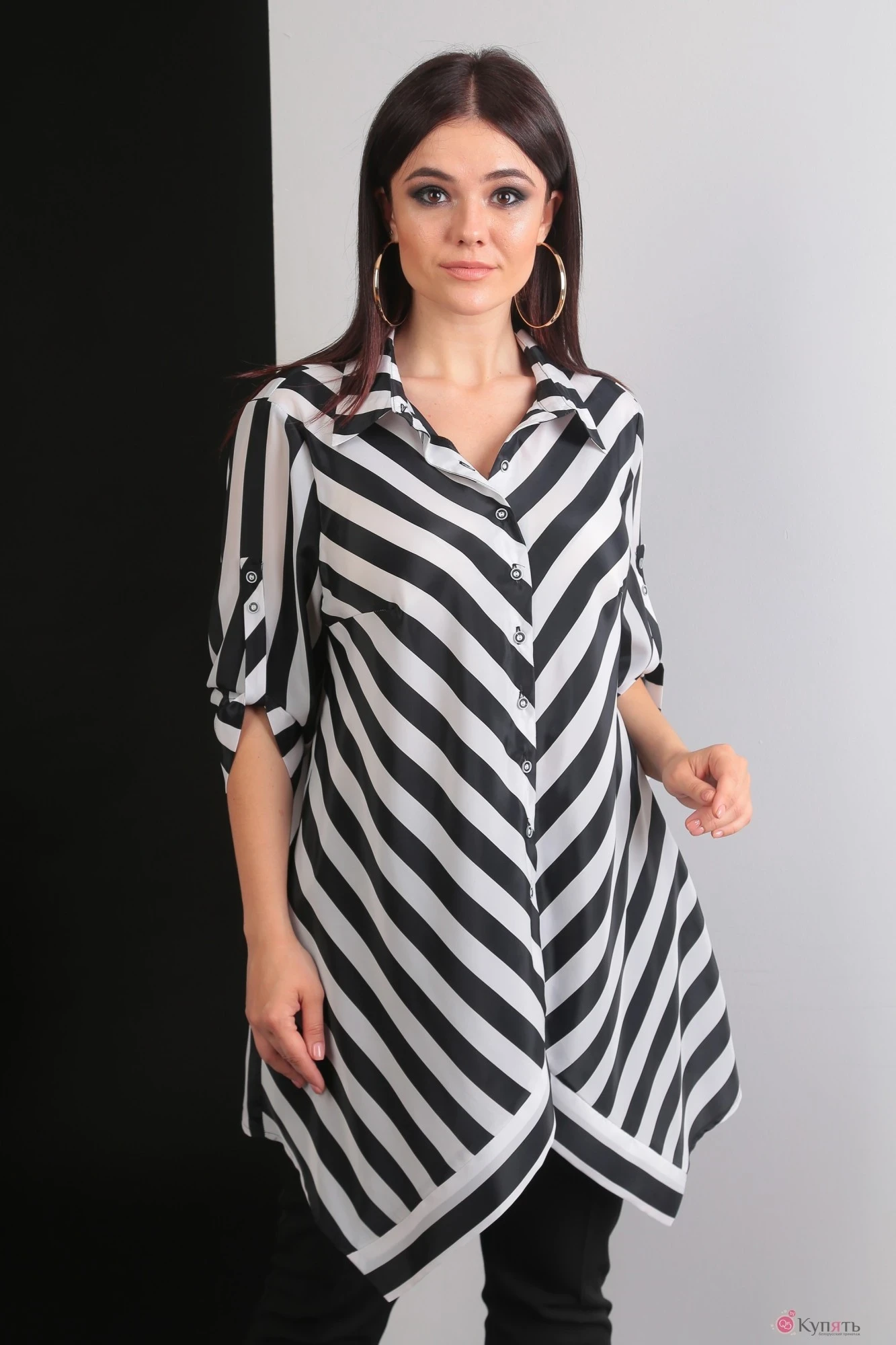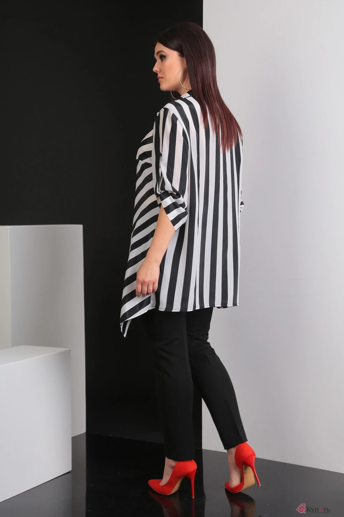 Блузка, туника, рубашка Мода-Юрс 2413 черная крупная полоска