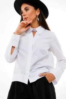 Запоминающиеся детали этой рубашки - треугольные вырезы под воротником и над манжетами.