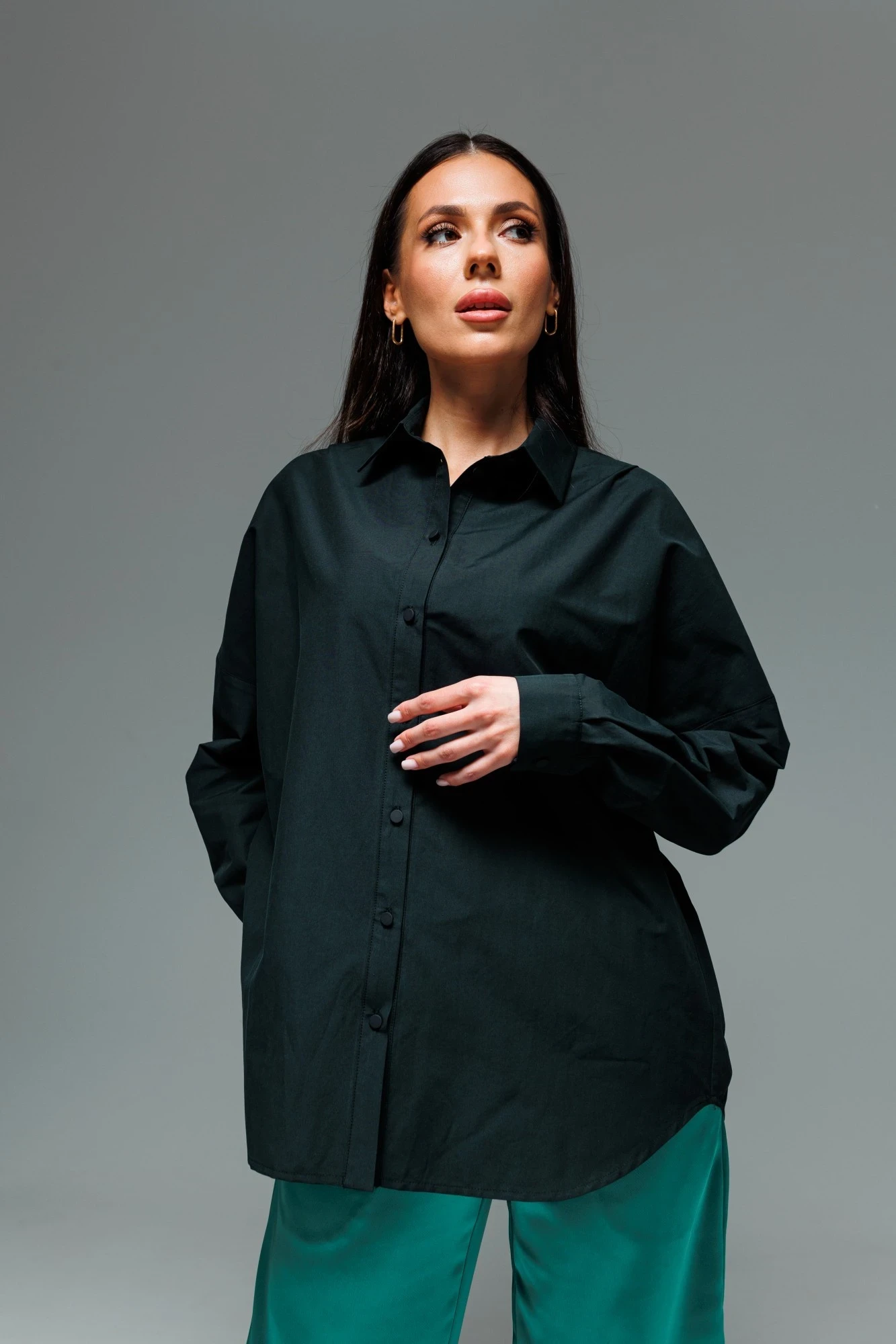 44,46,48,50,52Длина изделия блузона по спинке 73.5 см. Рукав рубашечный одношовный, завершается манжетой (высота 5 см) с застежкой петля-пуговица. Длина спущенного плечевого шва 33 см. Длина рукава с манжетой 41 см