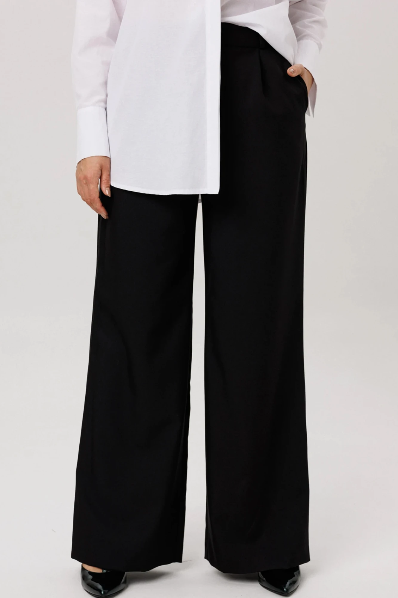 Широкие, струящиеся силуэты, мягко ниспадающие от талии, создают эффект роскошного движения с каждым шагом. Глубокий, насыщенный черный цвет – властный и невероятно притягательный – мгновенно приковывает взгляды, делая вас центром внимания в любой обстановке.