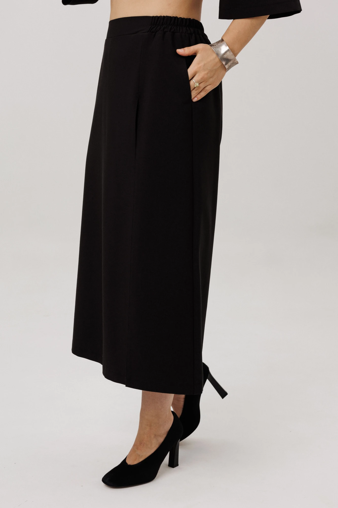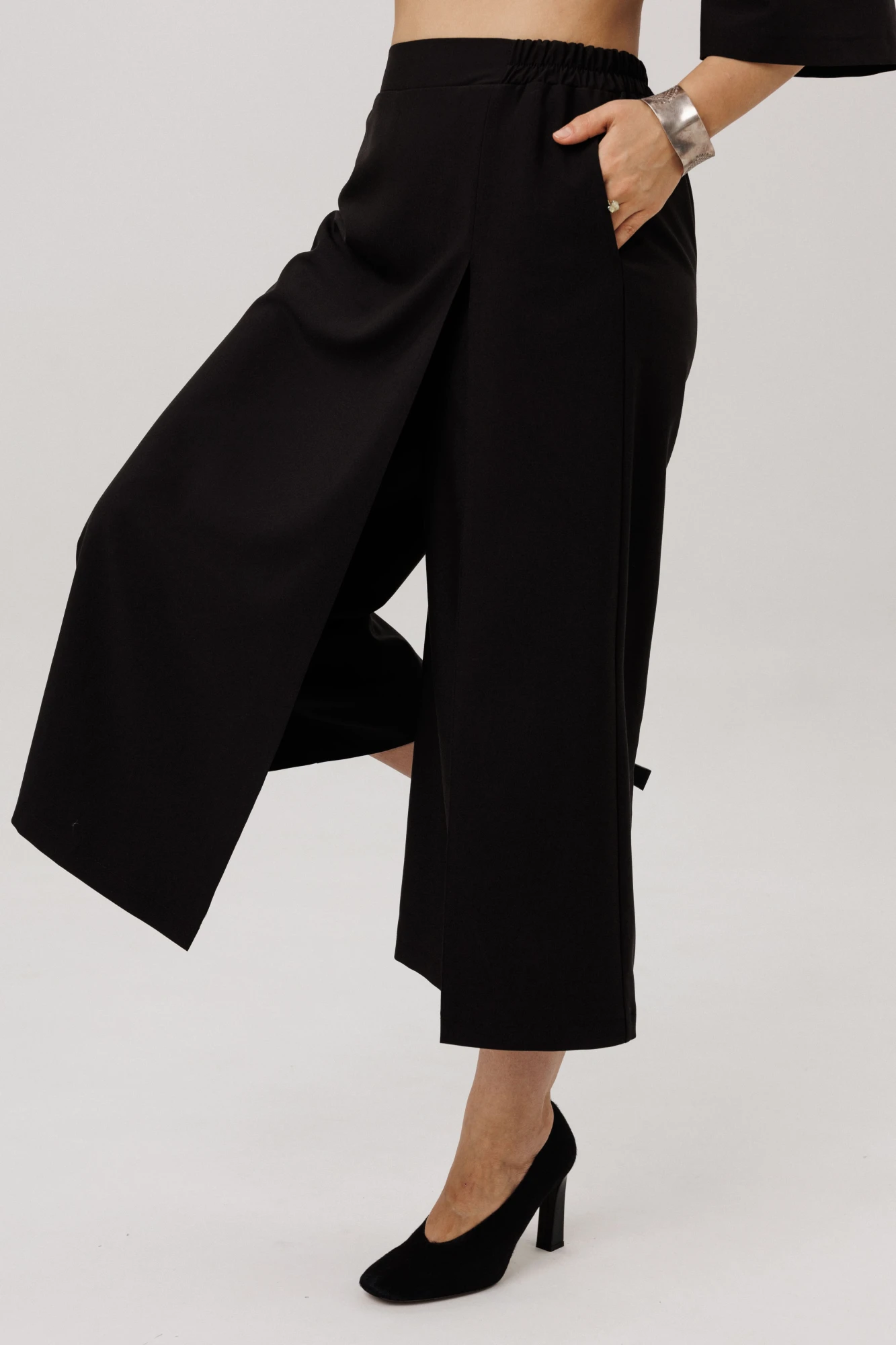 Эти юбка-брюки-кюлоты в базальтовом цвете - прекрасный синтез повседневной лёгкости и особенного стиля. Эта вещь станет вашим любимым спутником, легко преображаясь из дня в день: в паре с воздушной блузой и каблуками она звучит по-деловому изысканно, а с уютным свитером и кедами превращается в идеал расслабленной элегантности. Это та самая вещь, в которой вы чувствуете себя необыкновенно красивой и при этом абсолютно собой.