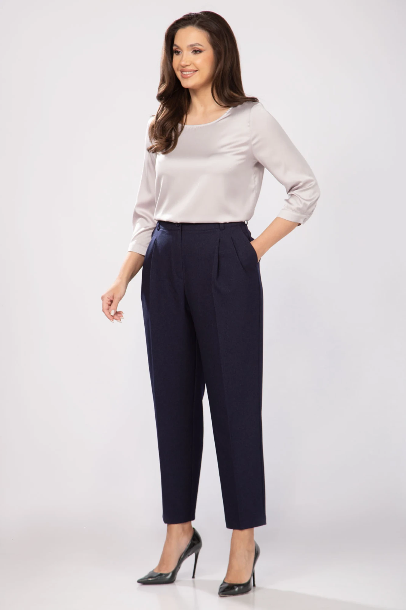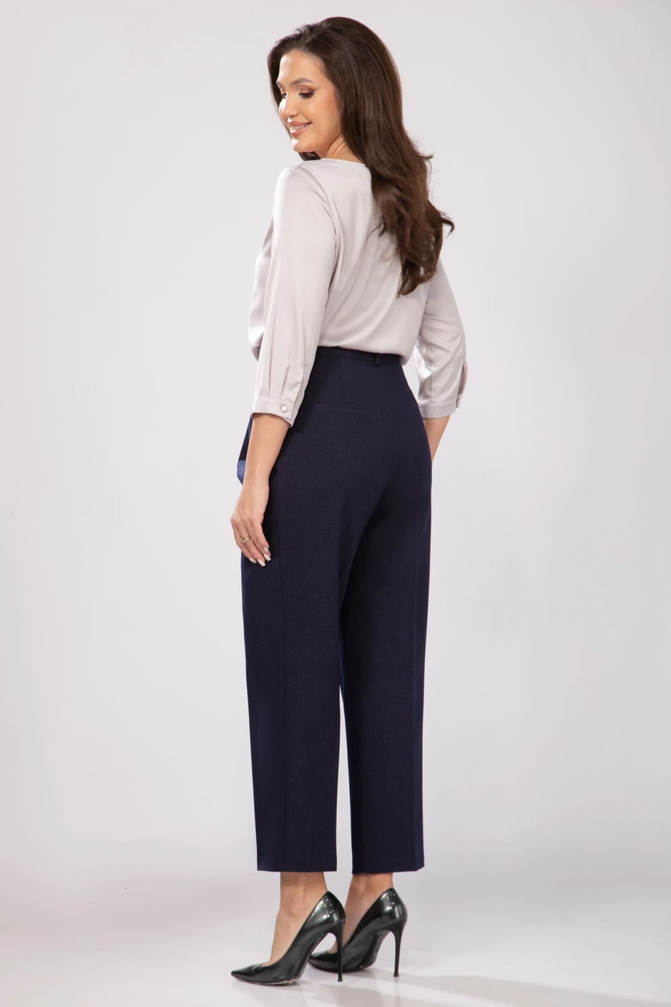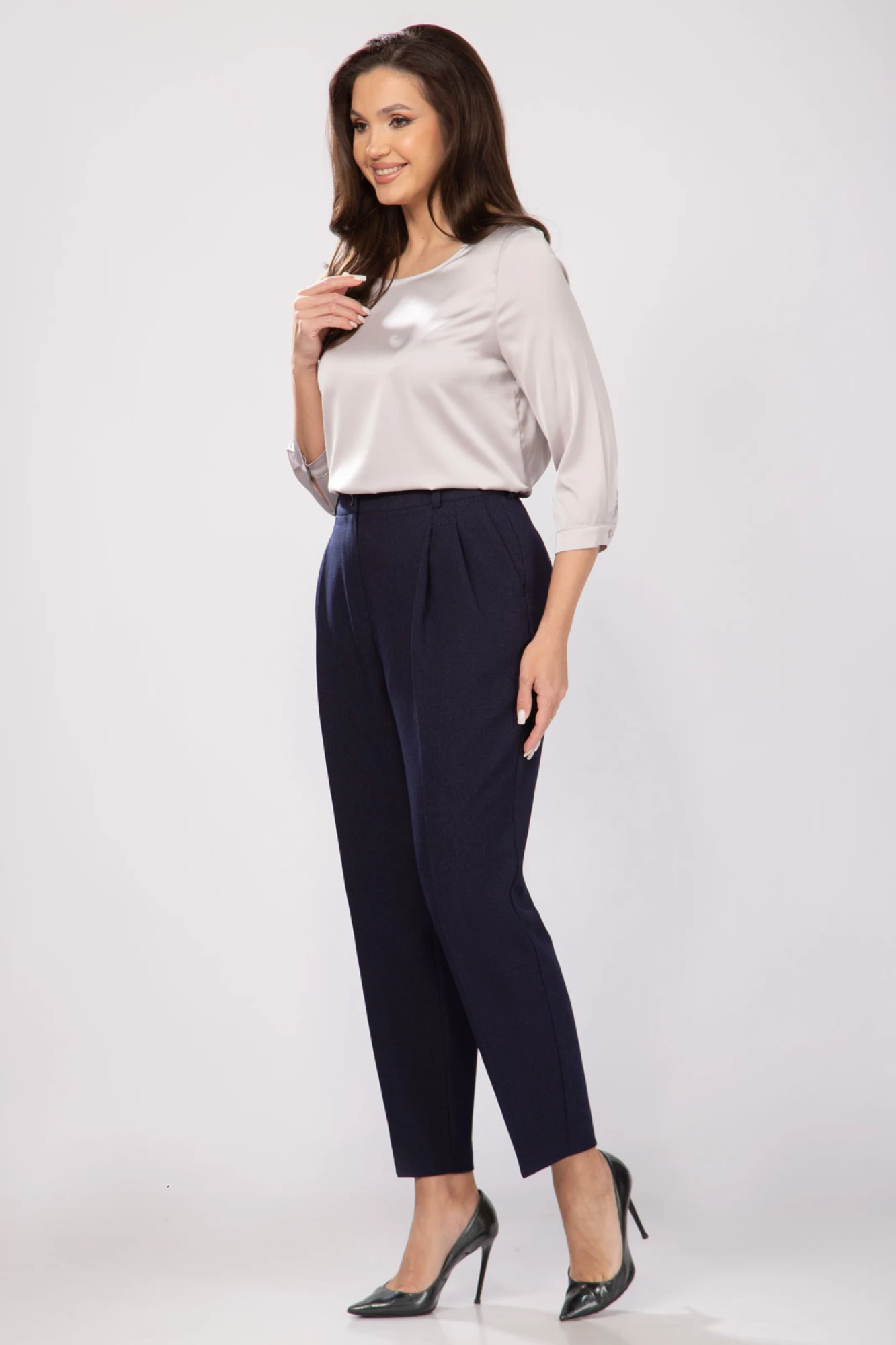 Спереди в шов пояса заложены симметричные складки. Центральные складки переходят в стрелки.