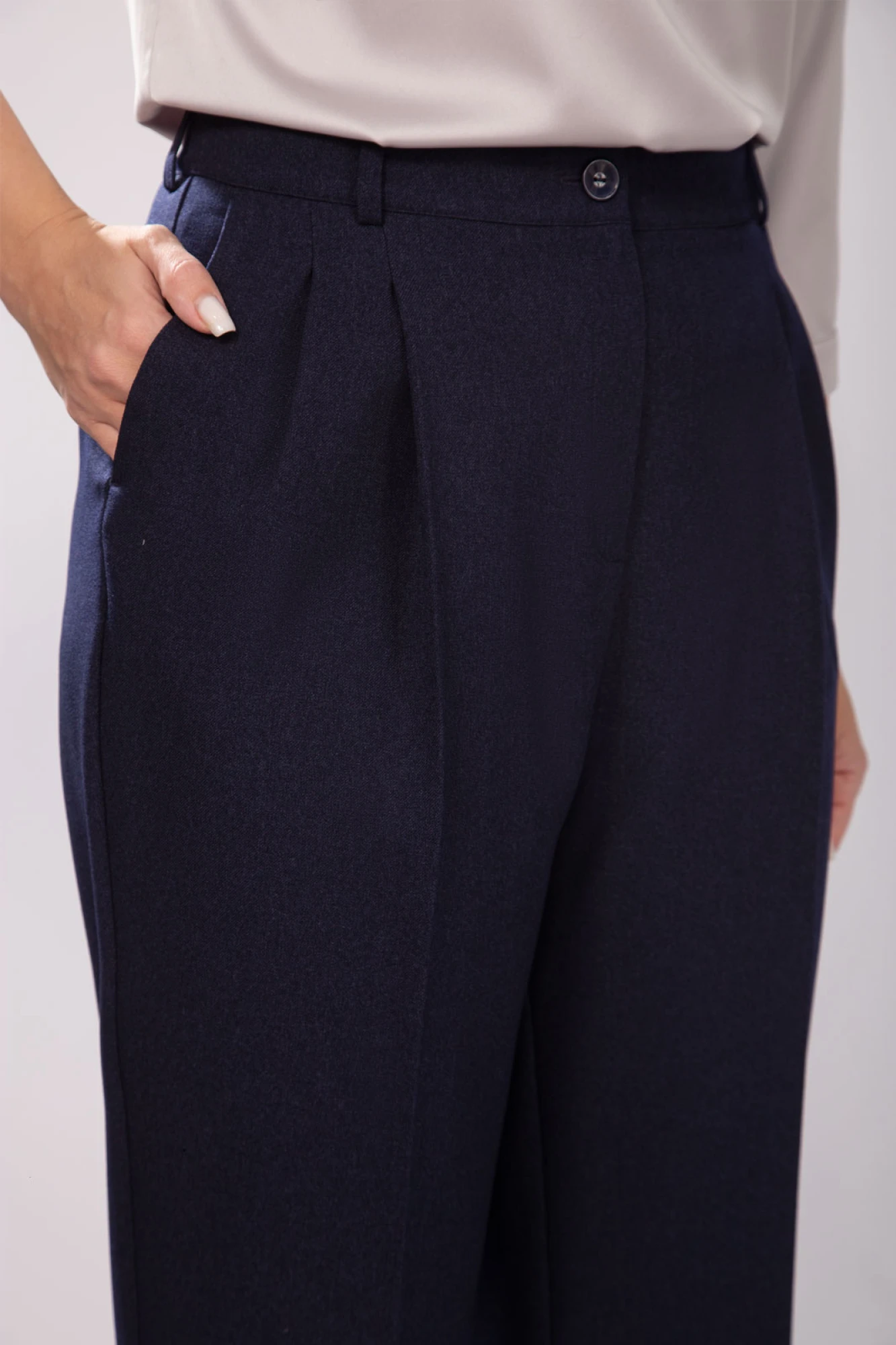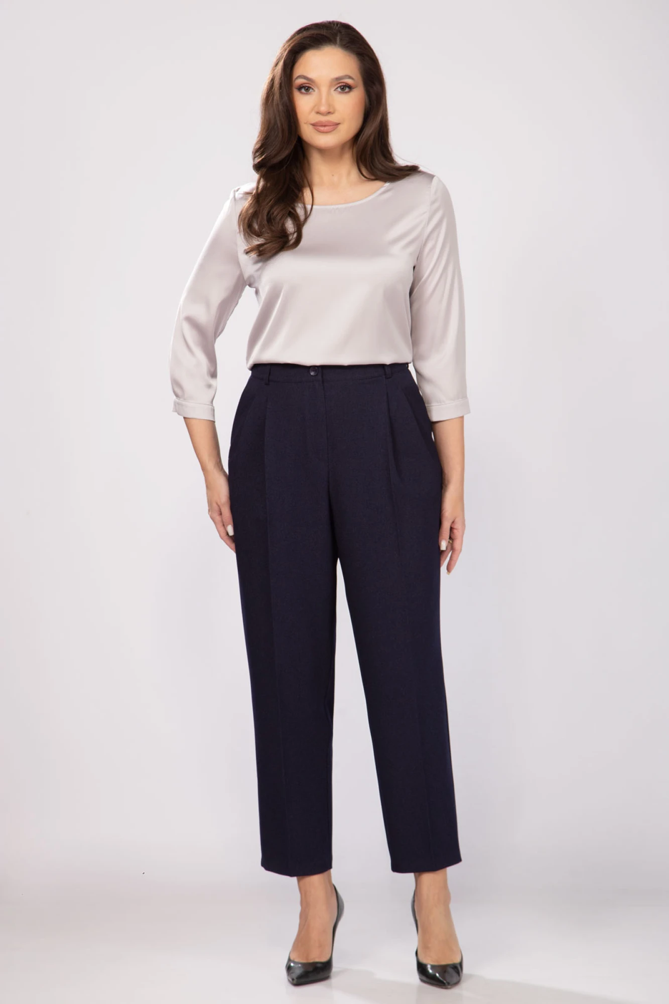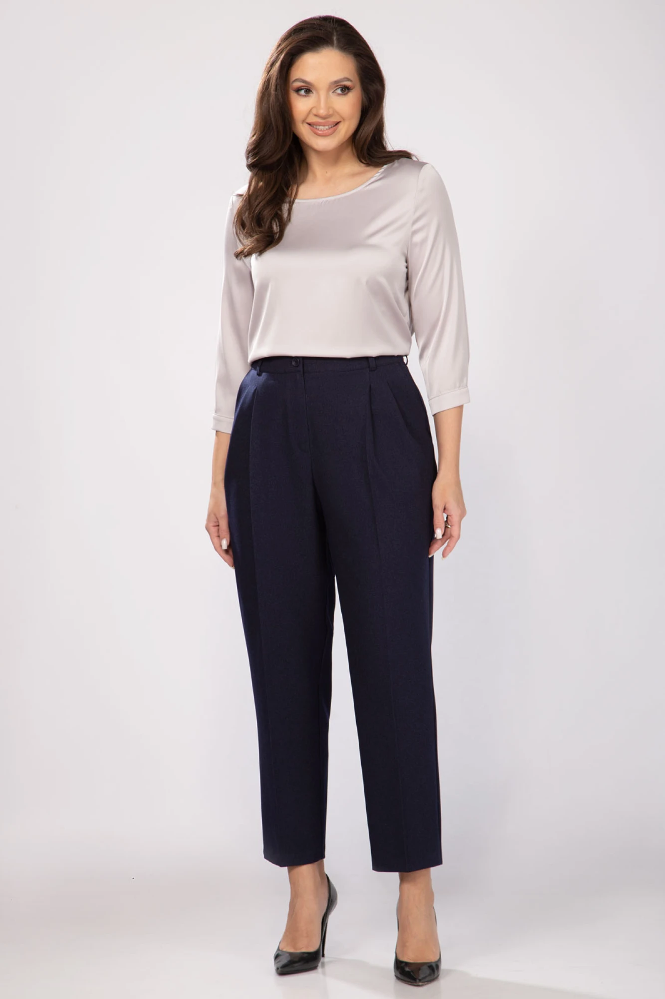 Спереди в шов пояса заложены симметричные складки. Центральные складки переходят в стрелки.