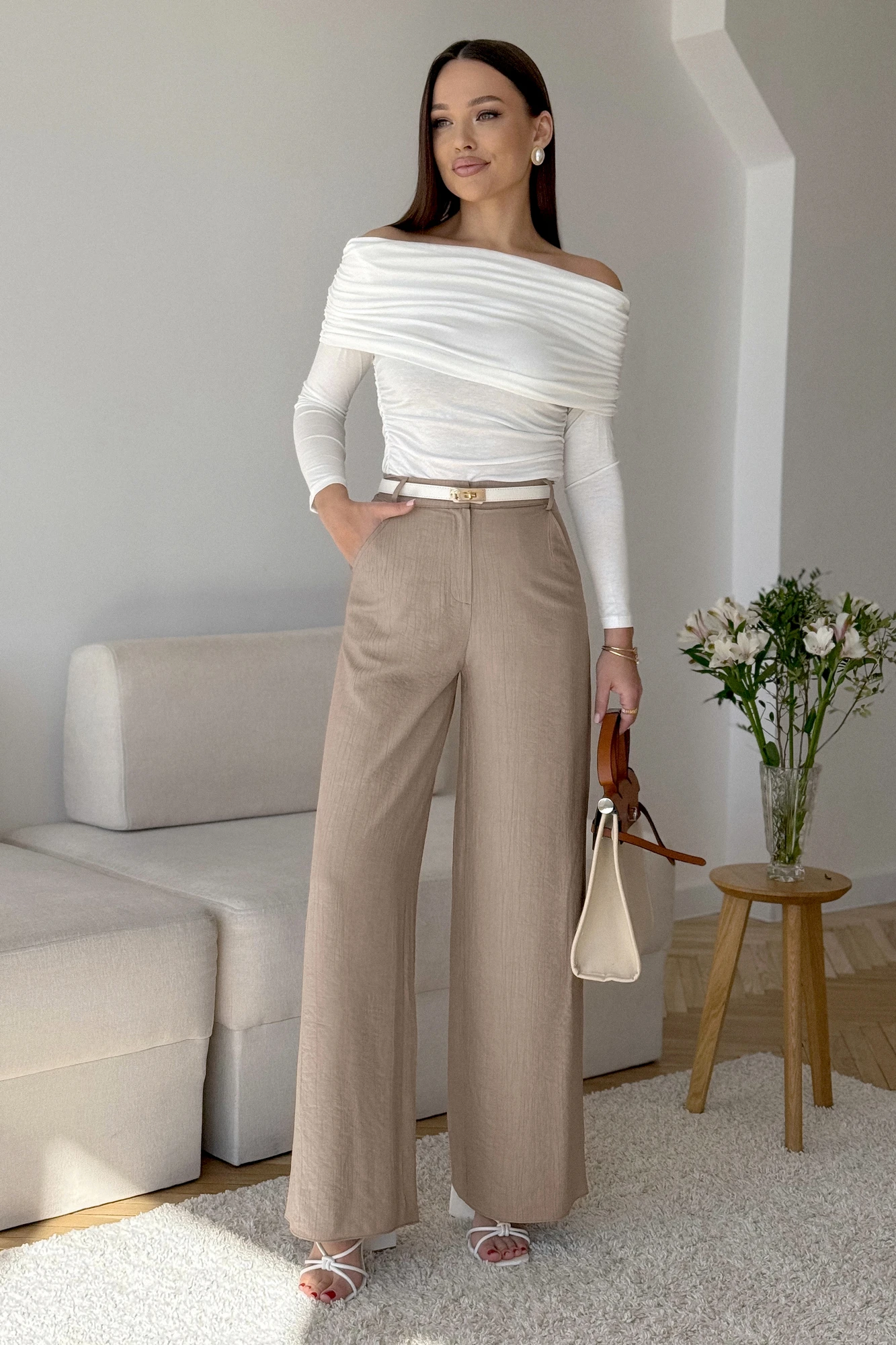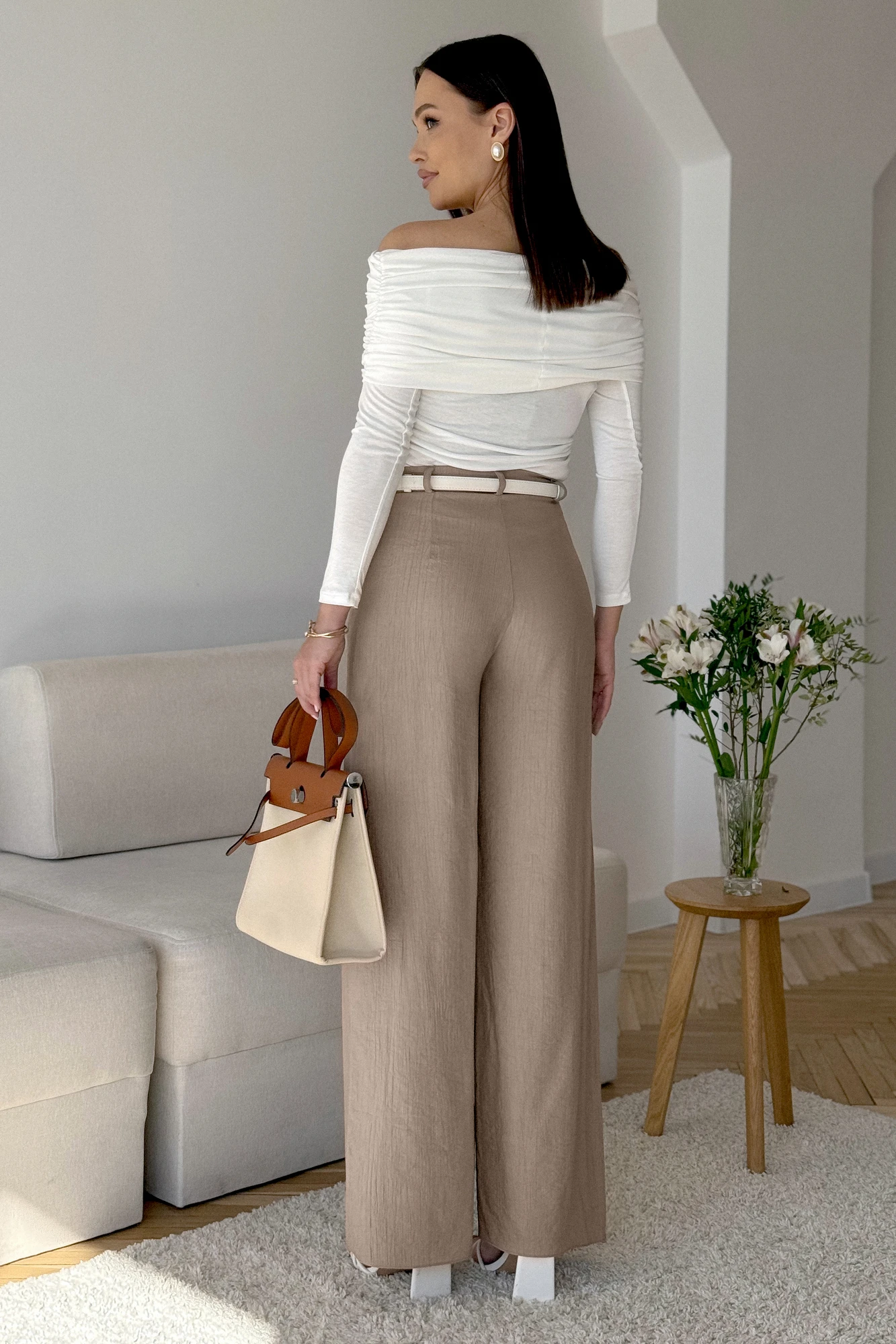 Промеры на примере 42 р.: Длина изделия по боковому шву с учетом пояса 112 см, ОТ - 68 см, ОБ - 94 см. Ширина(1/2) брюк по низу 31,5 см.