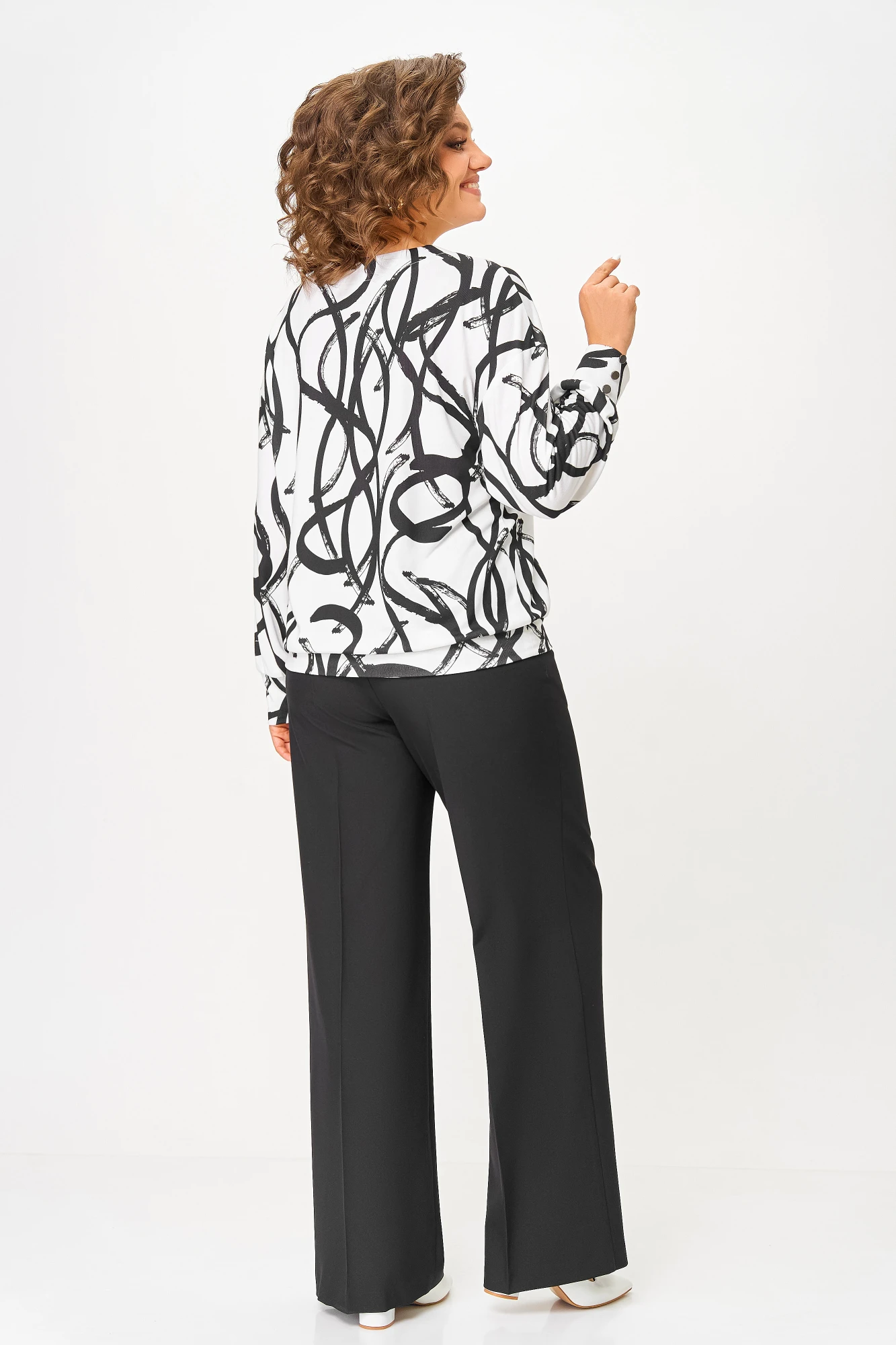 Джемпер (кофта) Swallow 865 Молочный_в_чёрный_принт
