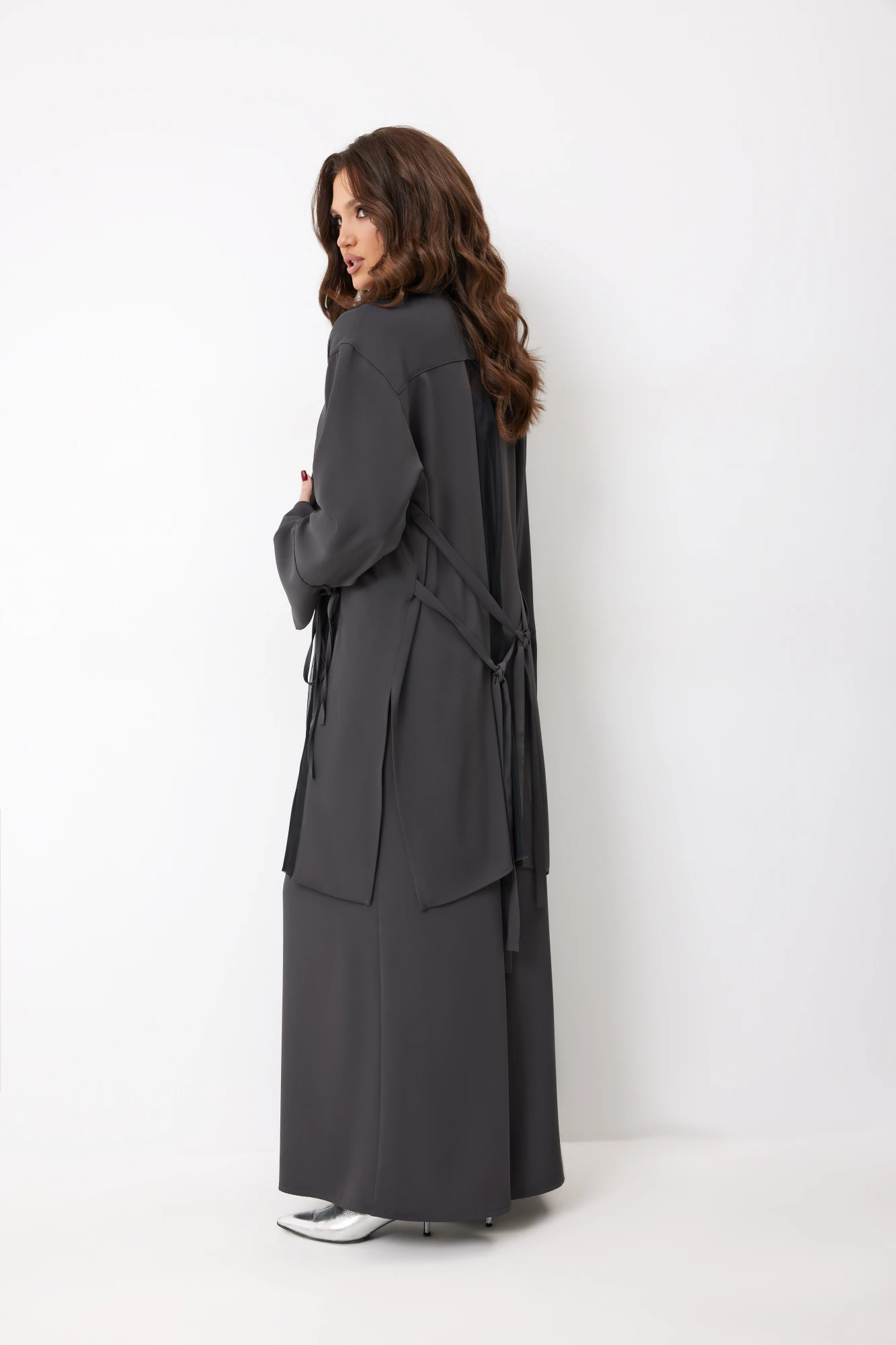 Размер 54: Блуза: ОГ-130, ОТ-130, ОБ-130, ширина плеча -19, длина рукава втачного-60, ширина рукава на уровне низа-16,5, длина изделия спинки по центру-92. Комбинезон: ОГ-114, ОТ-116, ОБ-124, ширина плеча-6,5, длина изделия спинки по боковому шву-121.