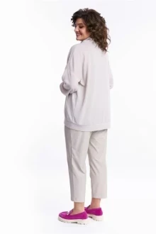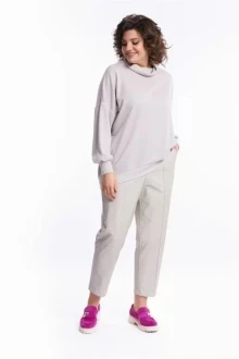 Длина джемпера по спинке 70 см, длина рукава от горловины 73 см. Длина брюк по боковому шву с поясом 96 см. Параметры модели в 50 размере: ОГ 122см, ОТ 116см, ОБ 124см, ОТ брюк 92см, ОБ брюк 110см. Параметры модели в 52 размере: ОГ 126см, ОТ 120см, ОБ 128см, ОТ брюк 96см, ОБ брюк 114см. Параметры модели в 54 размере: ОГ 130см, ОТ 124см, ОБ 132см, ОТ брюк 100см, ОБ брюк 118см.