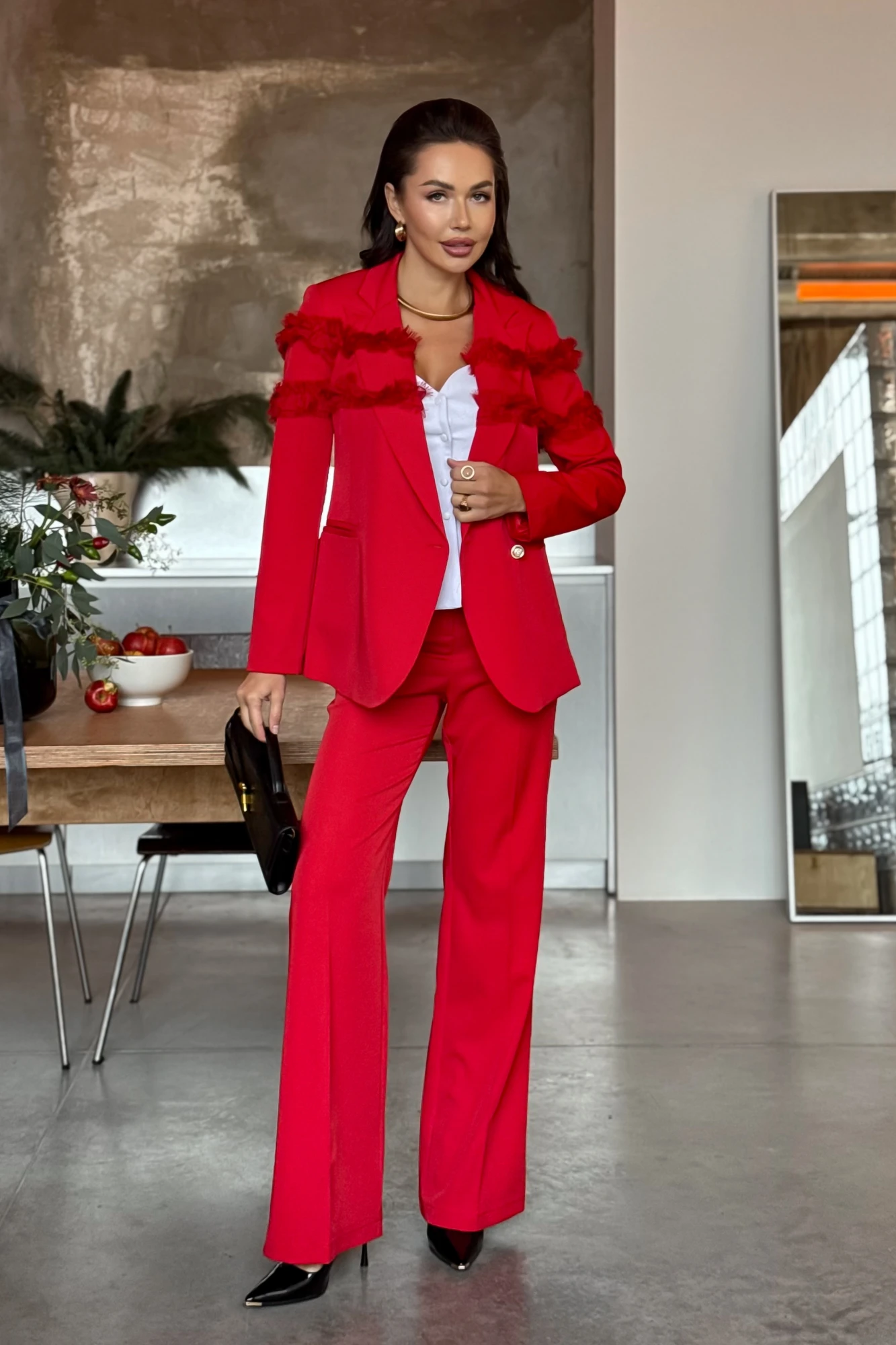 Брюки станут глотком свежего воздуха среди широких силуэтов и брюк палаццо. Их облегающий крой подчёркивает линию бедёр и тали, а затем изящно расклешается от колена.Такой фасон позволит скорректировать фигуру и подойдёт для строго дресс кода. Вертикальные линии по центру брючин вытягивают силуэт и удлиняют ноги. Застёжка классическая - молния и пуговица в цвет изделия.