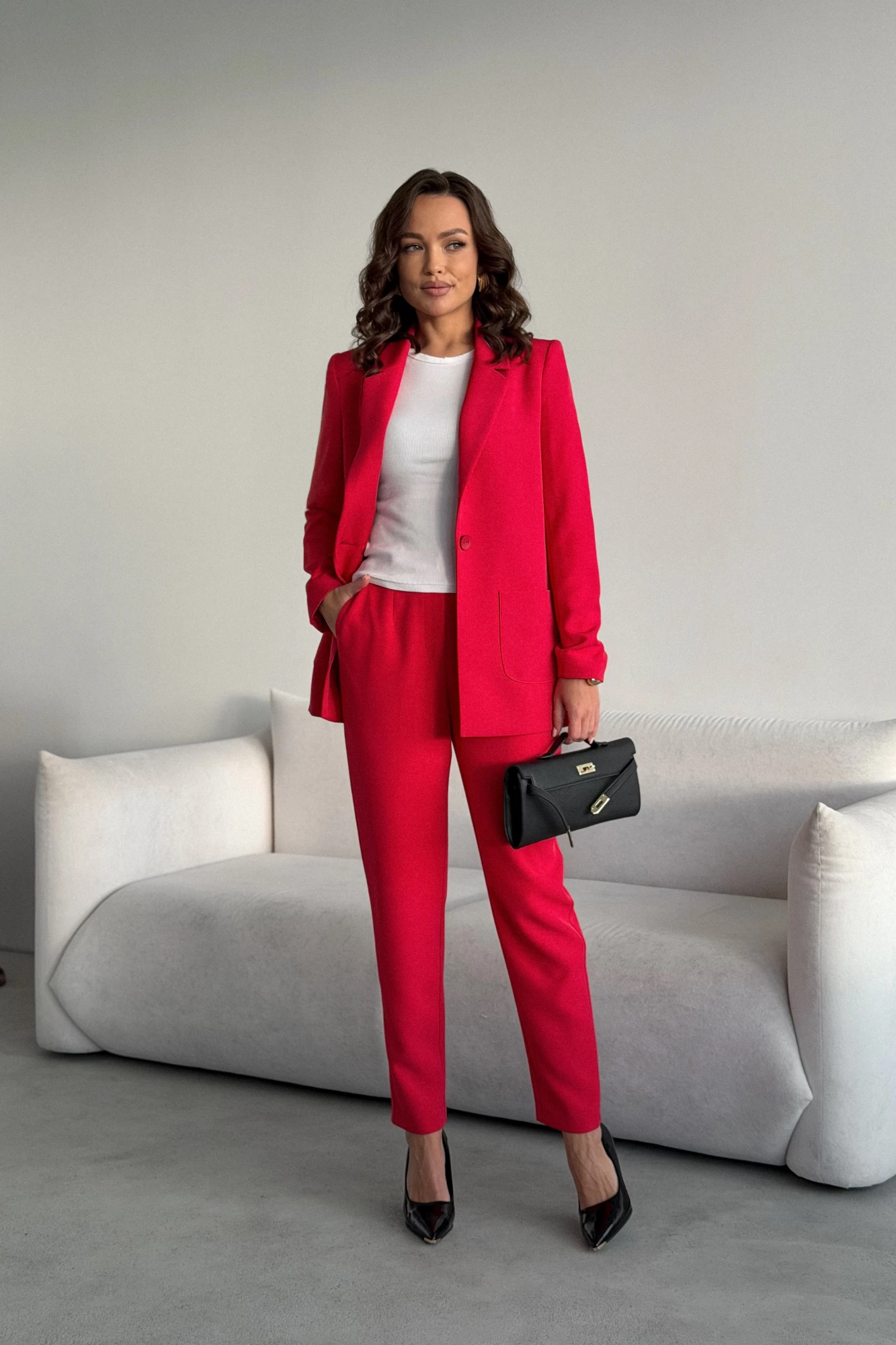 Жакет с центрально-бортовой застежкой на одну петлю-пуговицу и воротником пиджачного типа.