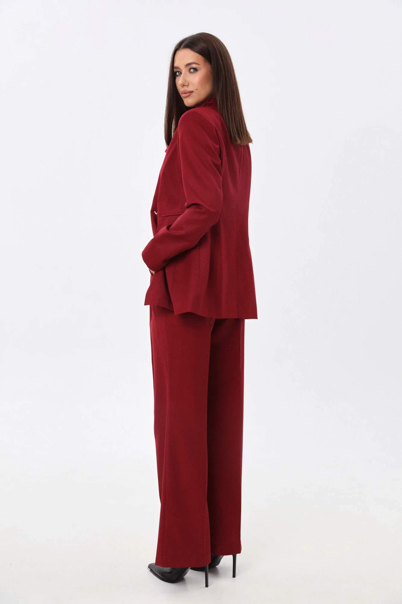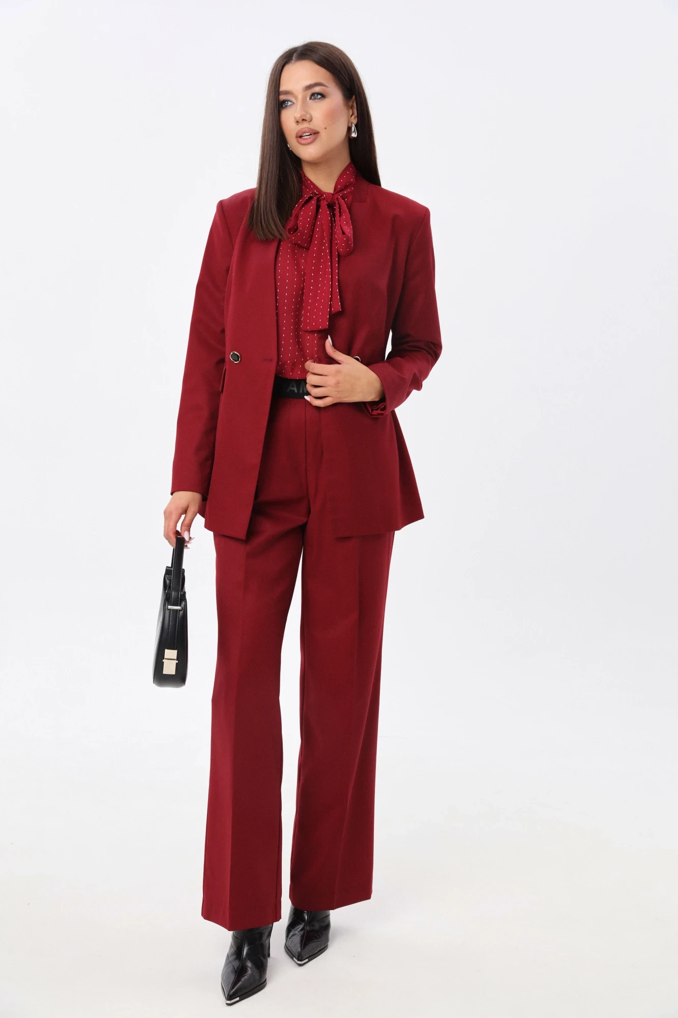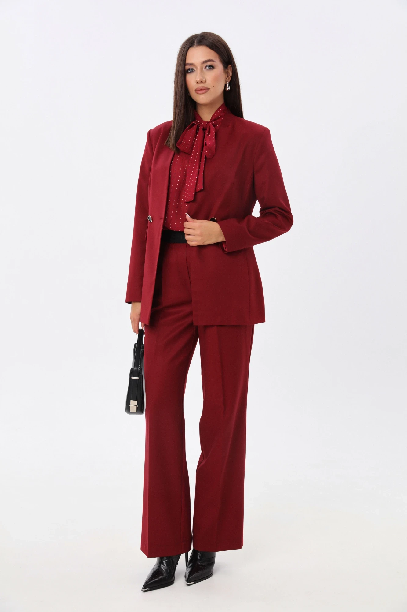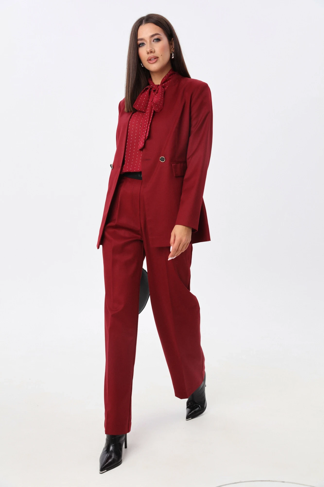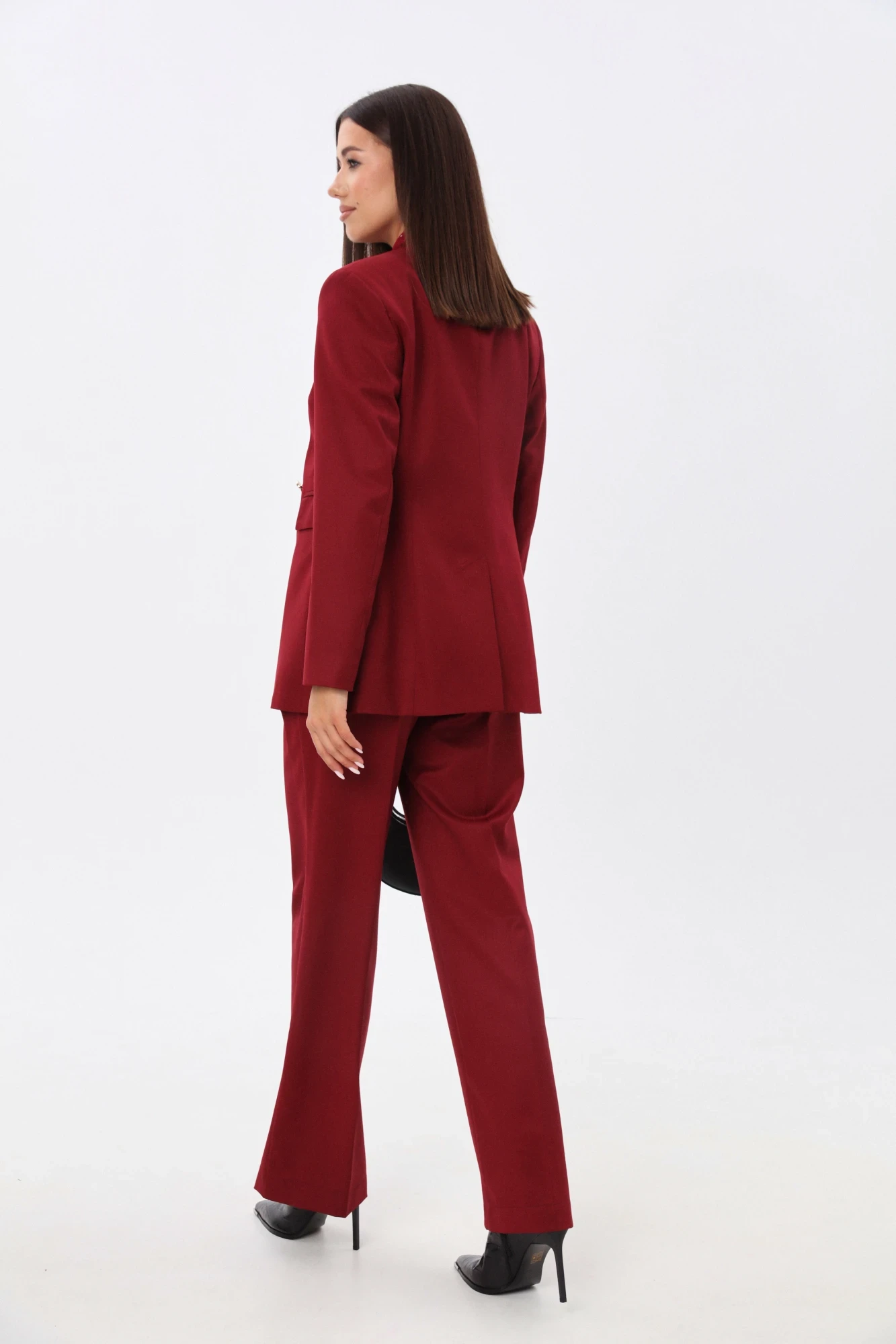 46,48, 50 ,52,54,56Двубортный жакет полуприлегающего силуэта с застёжкой на две пуговицы с прорезными карманами с листочками и клапанами. Нагрудные вытачки на полочках расположены вертикально и совмещены с талиевыми, заканчиваются входом в карман. Спинка имеет плечевые вытачки, средний шов со шлицей. Рукава двухшовные, длинные. Воротник – стойка переходит в край борта, имеющий V-образную форму. Застежка на прорезные петли и пуговицы. Жакет полностью обработан притачной подкладкой.