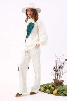 Брючный костюм NikVa 922-3 молоко+изумруд двойка