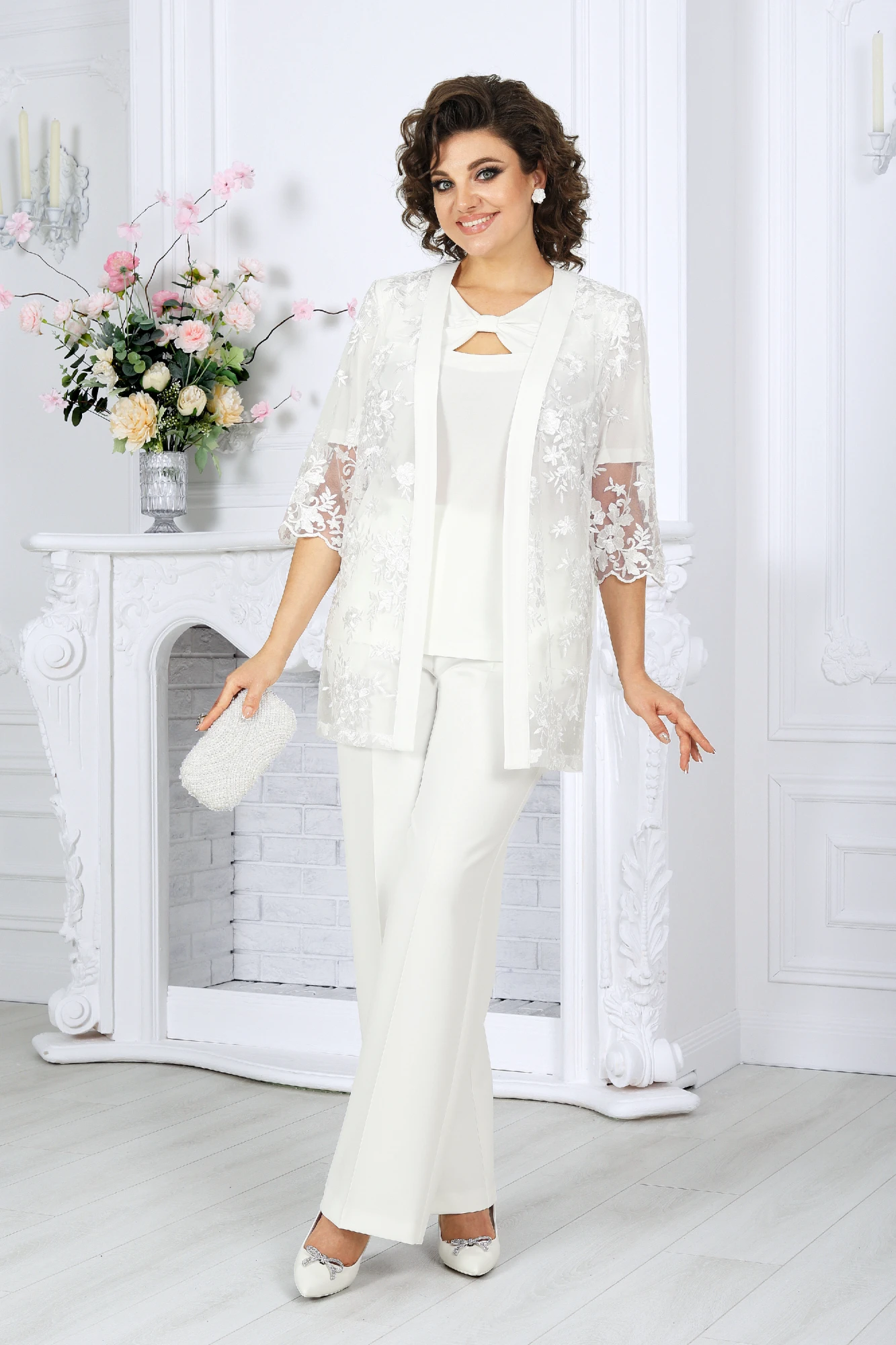 Брючный костюм Нинель Шик 7498 молочный тройка