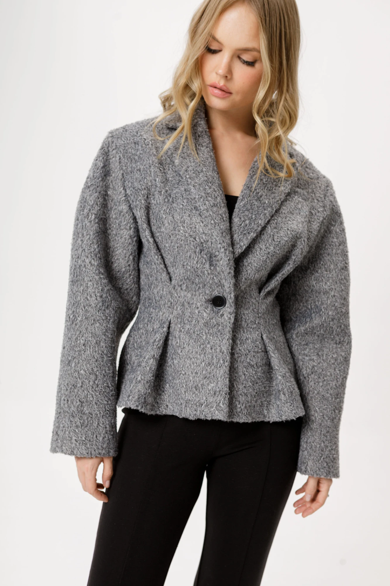 Детали: полуприлегающий силуэт, пиджачный воротник, застежка на петлю и пуговицу, жакет на подкладке. Брюки с высокой посадкой, перед с рельефными швами, пояс с резинкой, брюки без карманов.