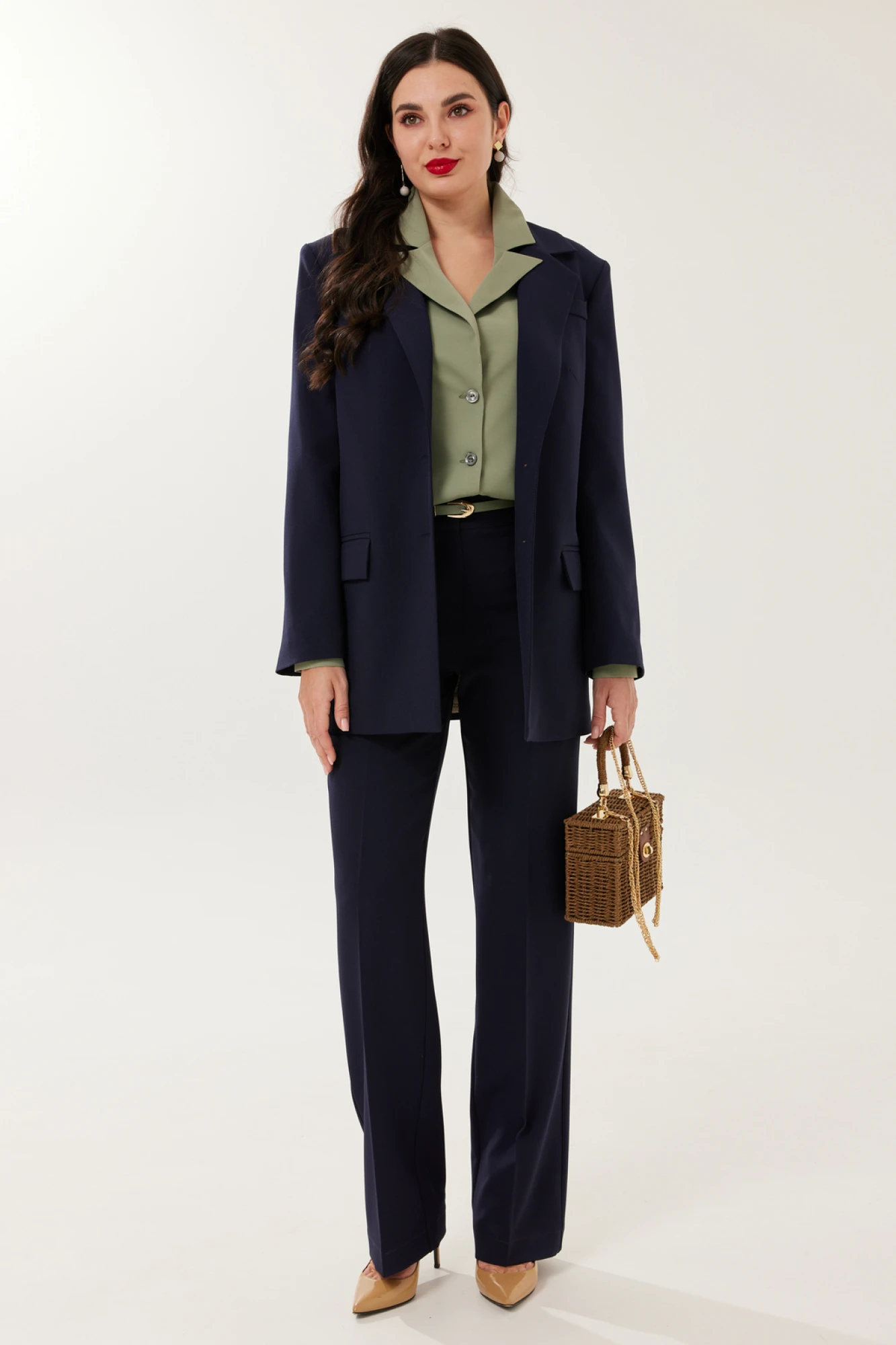 Брючный костюм Твой Имидж 2231 синий - оливковый тройка