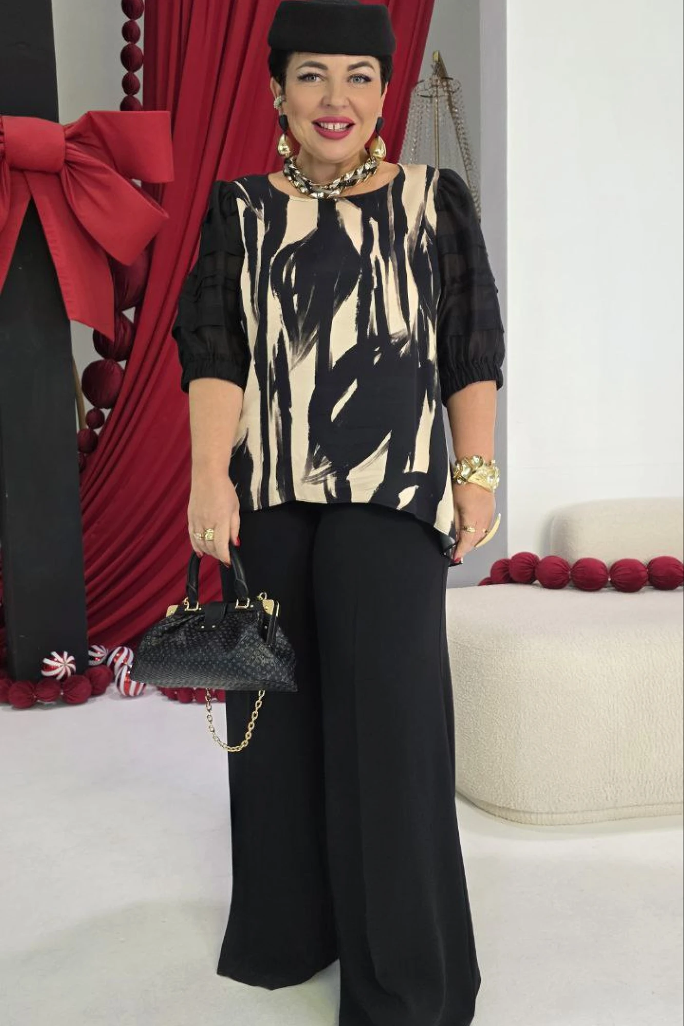 Брючный костюм Vittoria Queen 27633 черный, бежевый двойка