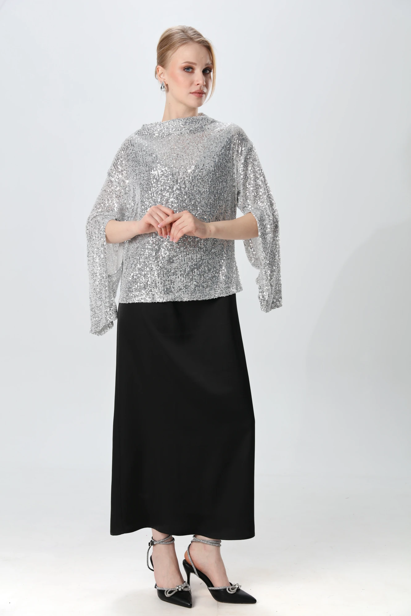 Костюм с платьем NikVa н1013-2 серебро и чёрный двойка