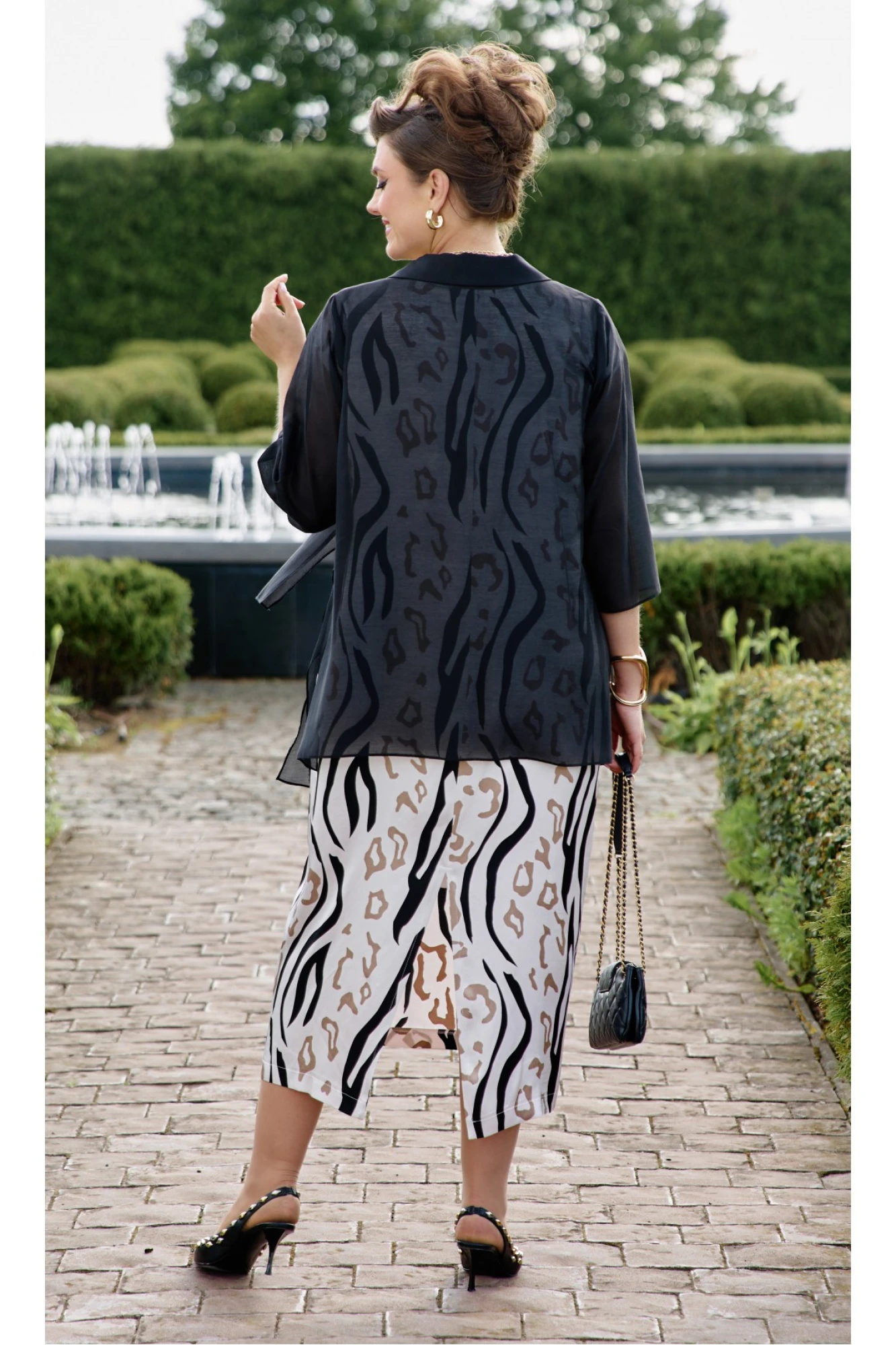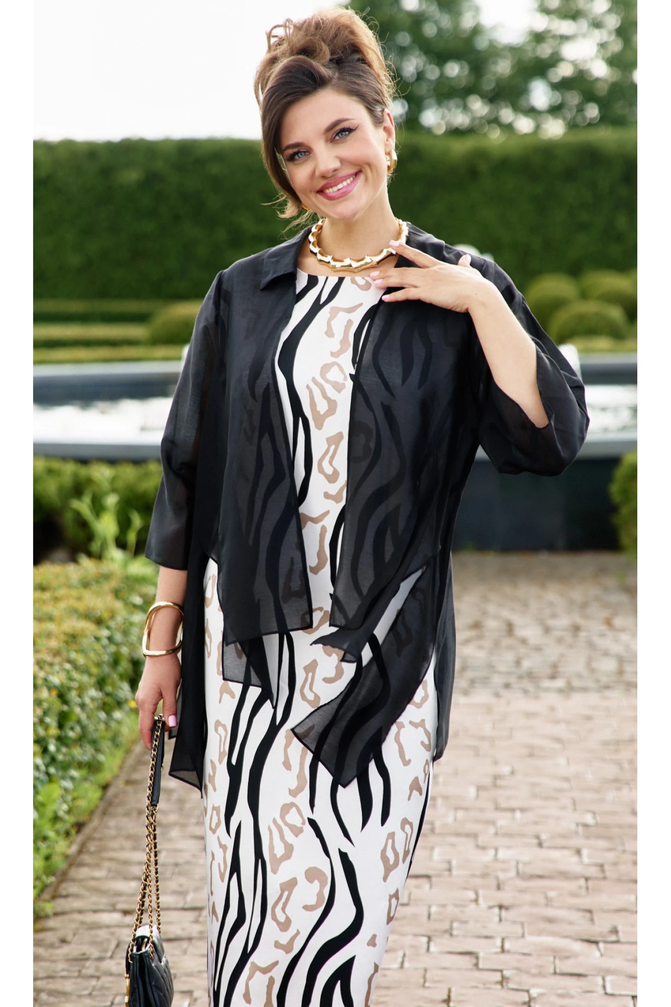 Длина платья от высшей точки плечевого шва до низа 122,5 см (р 52-56), 123,5 см (р 58-62). Длина рукава блузона 45 см.