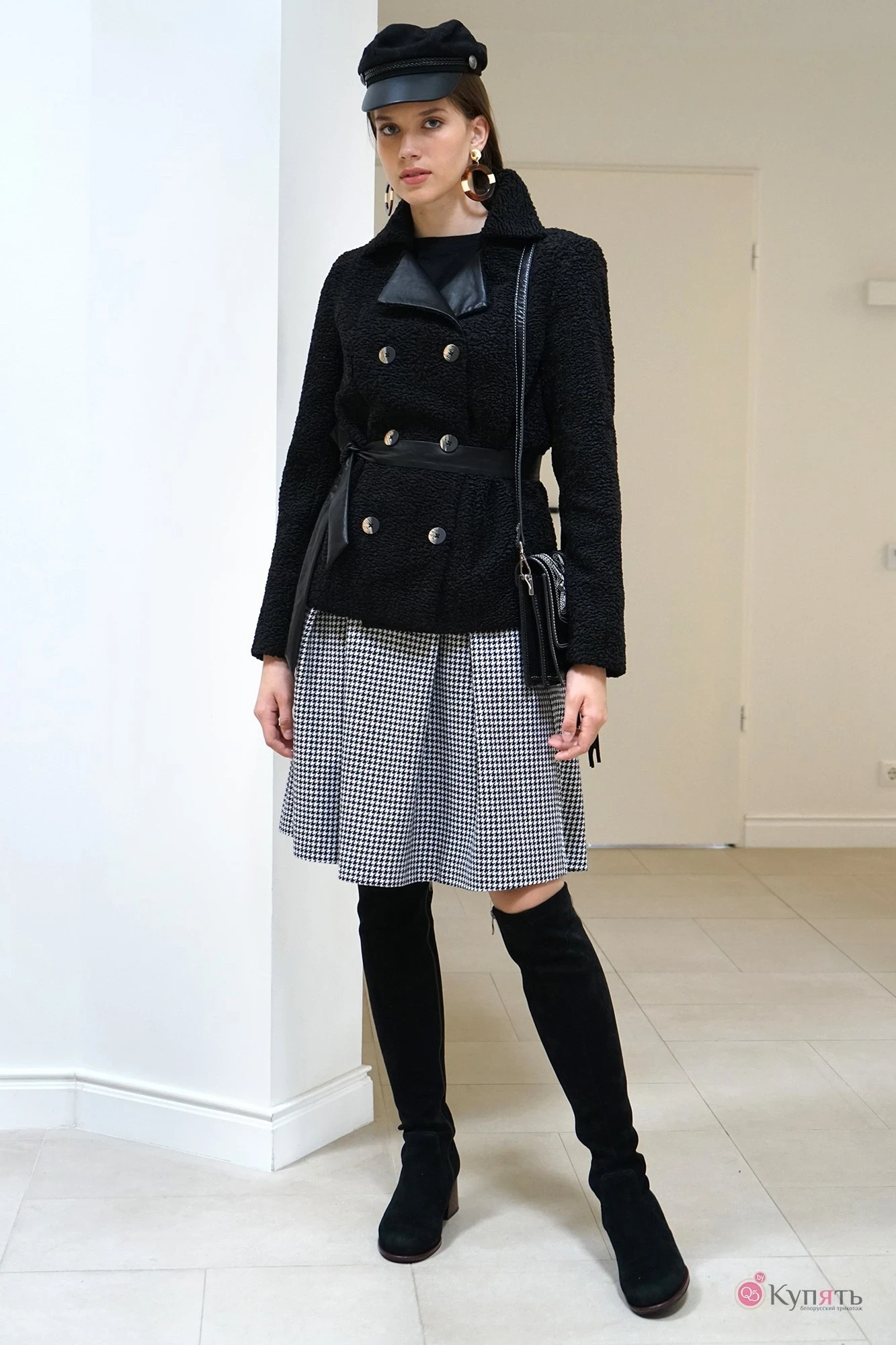 44,46,48,50Юбка из тепленького костюмного полотна на притачном поясе. Переднее и заднее полотнище с двумя мягкими, встречными складками. Заднее полотнище со средним швом, в котором застежка на потайную тесьму-молнию. Юбка без подкладки, в боковых швах карманы.