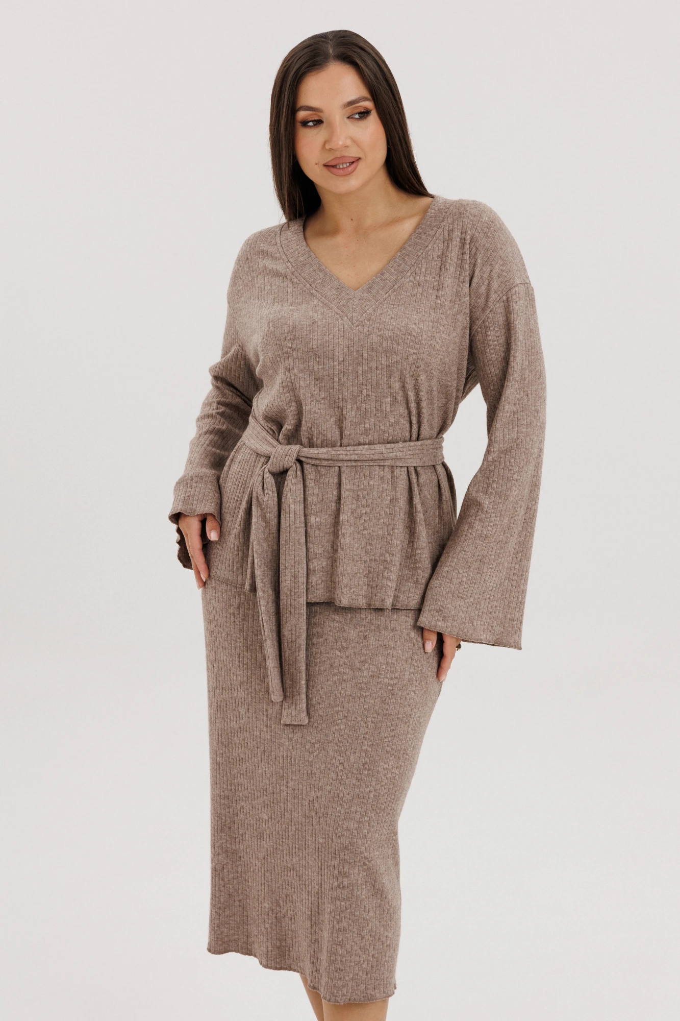 Длина джемпера около 67 см. Длина рукава с плечом около 74 см. Длина юбки около 75 см."