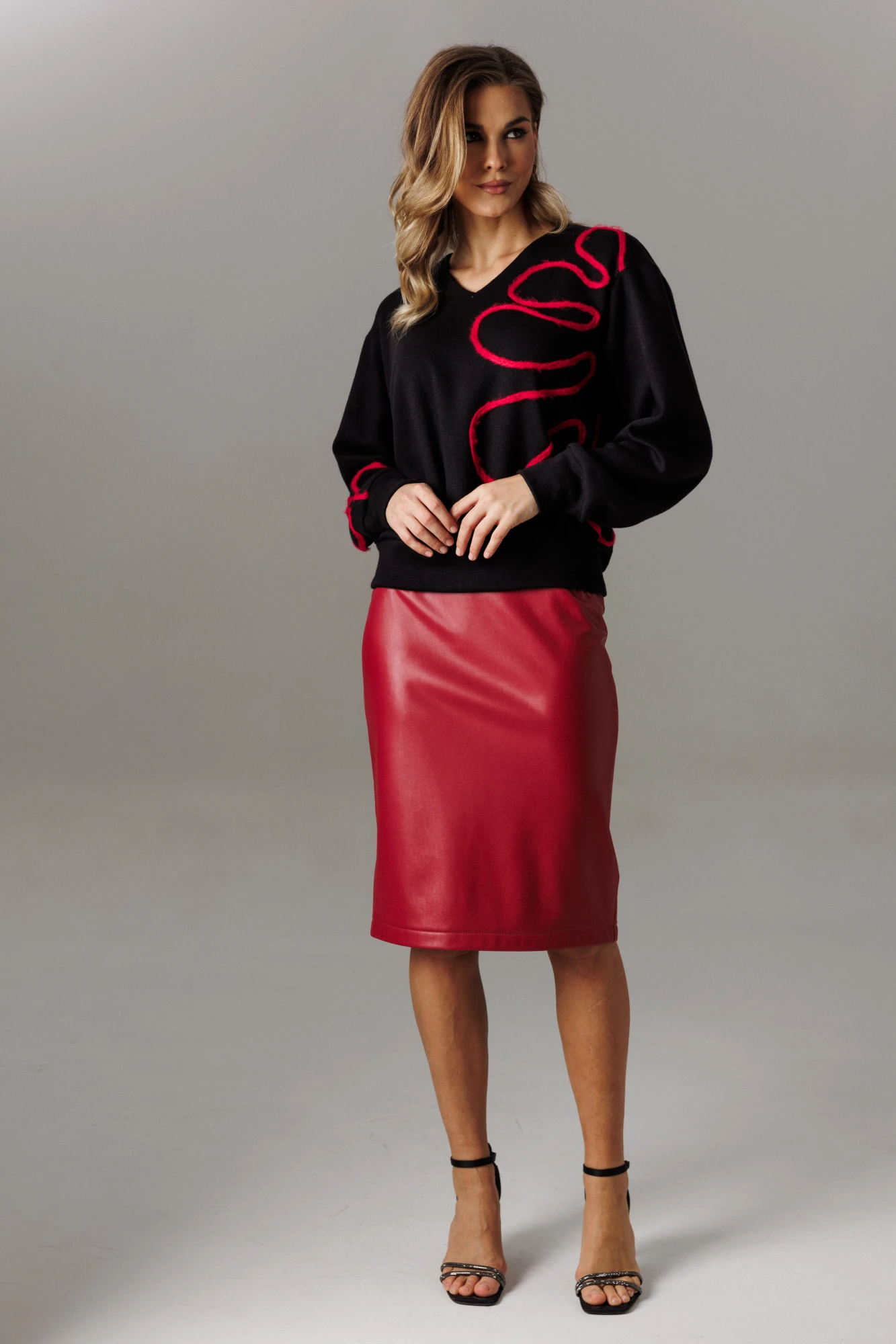 Юбочный костюм Ларс Стиль 1185 черный, красный двойка