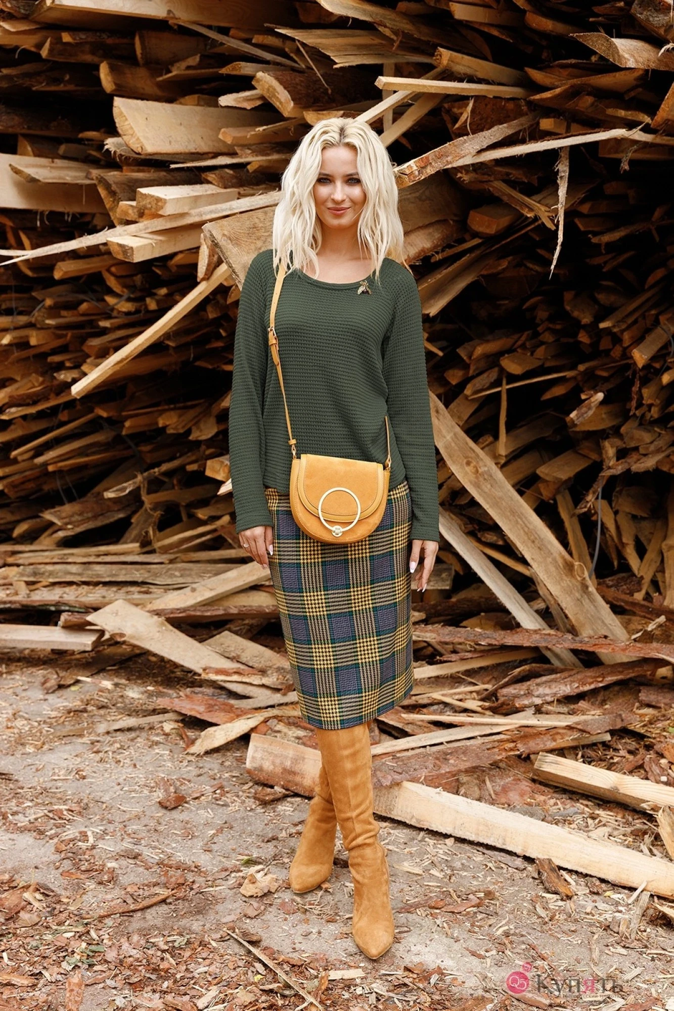 Юбочный костюм Люше 1853-1 оливка+клетка
