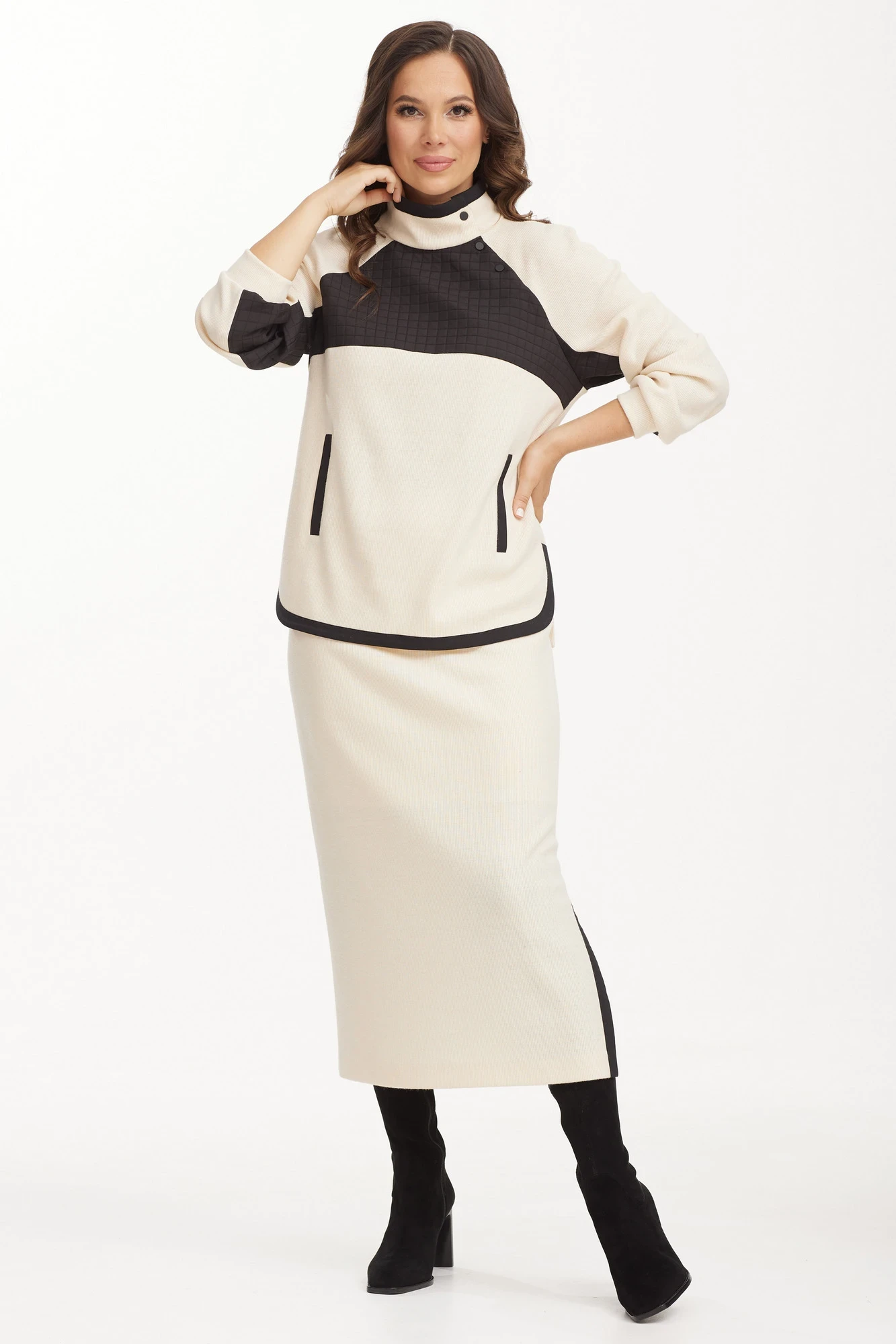 Юбочный костюм Магия Моды 2499 молоко+ черный