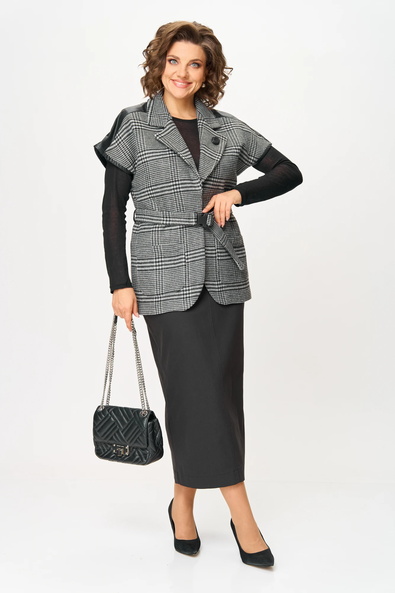 Юбочный костюм Michel Chic 1433 серый клетка, черный