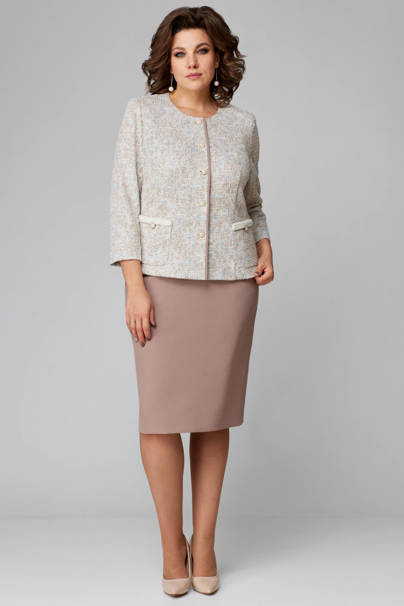Юбочный костюм Мишель Стиль 1216-1 бежево-голубой двойка