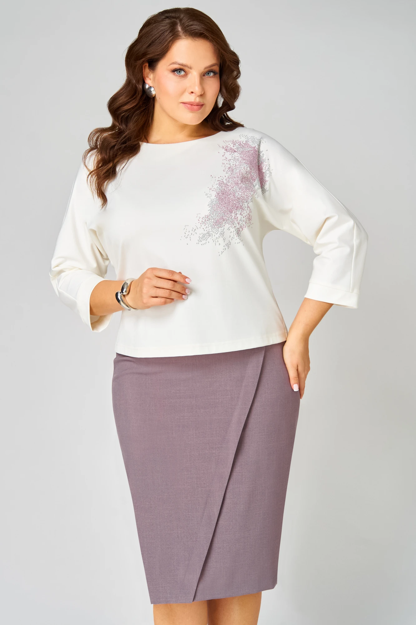 Юбочный костюм Мишель Стиль 1340 молочно-кофейный двойка