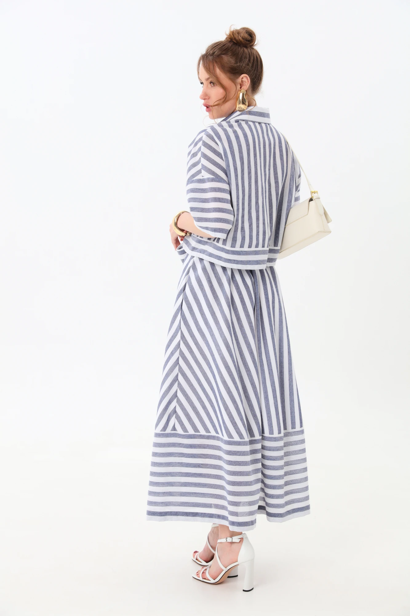 Юбочный костюм NikVa 958-3 бело-синие_полосы двойка