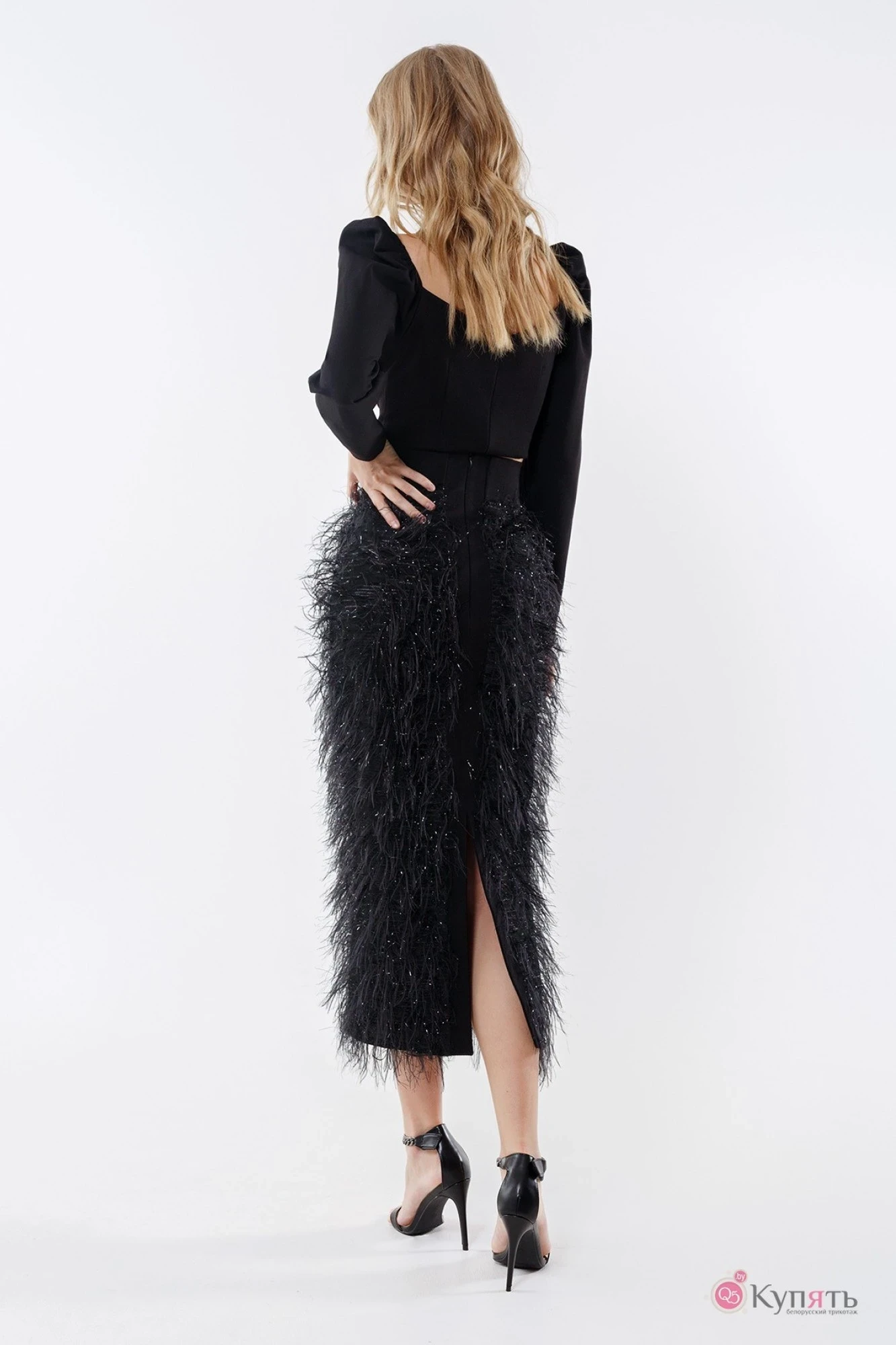 Длина топа по боковому шву около 15 см, длина рукава около 60 см; длина юбки по среднему шву около 85 см