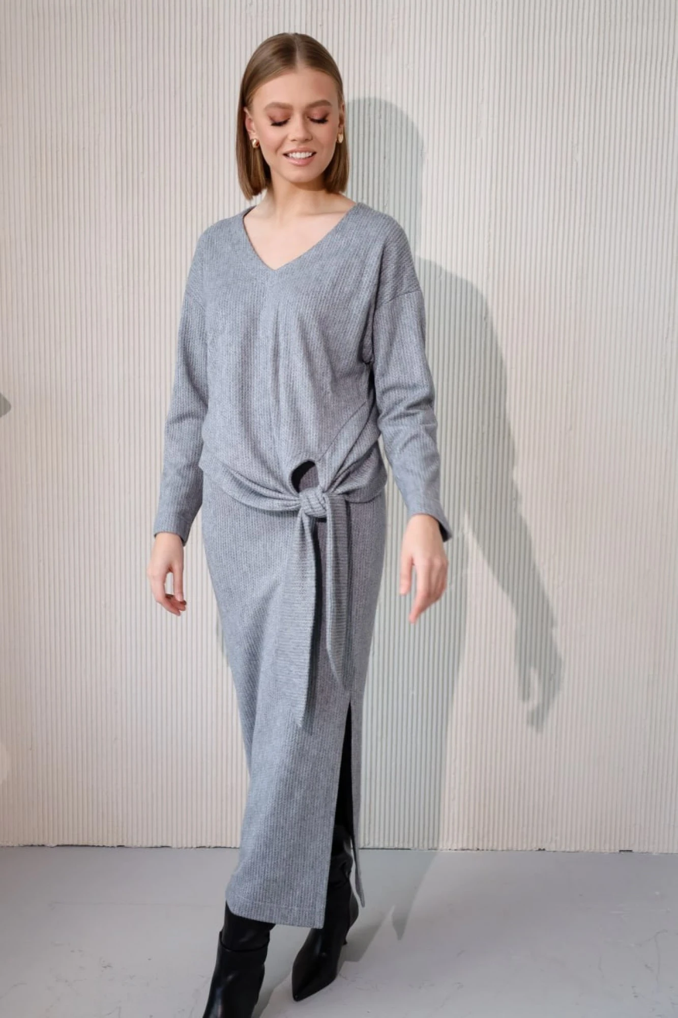 46,48Длина юбки 90 см (на резинке). Джемпер 60 см по спинке, рукава 47 см (спущенный).