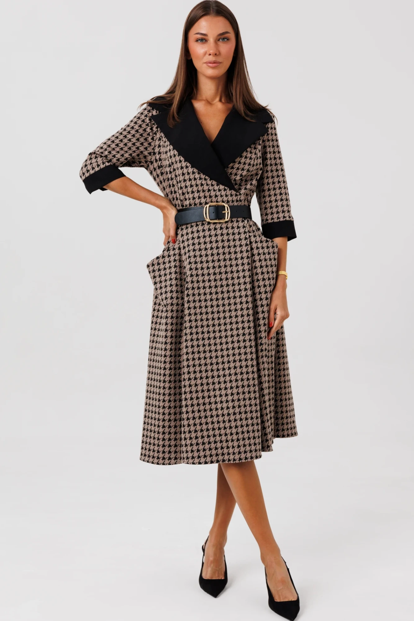 Платье Ларс Стиль 1128 капучино черный принт, черный