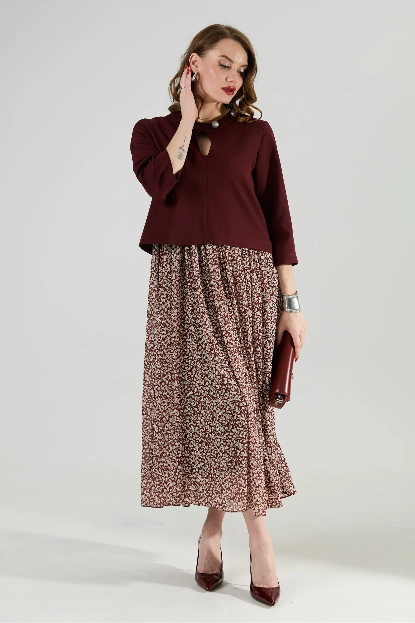Платье NikVa 1009-1 бургунди_и_цветы_на_винном_фоне