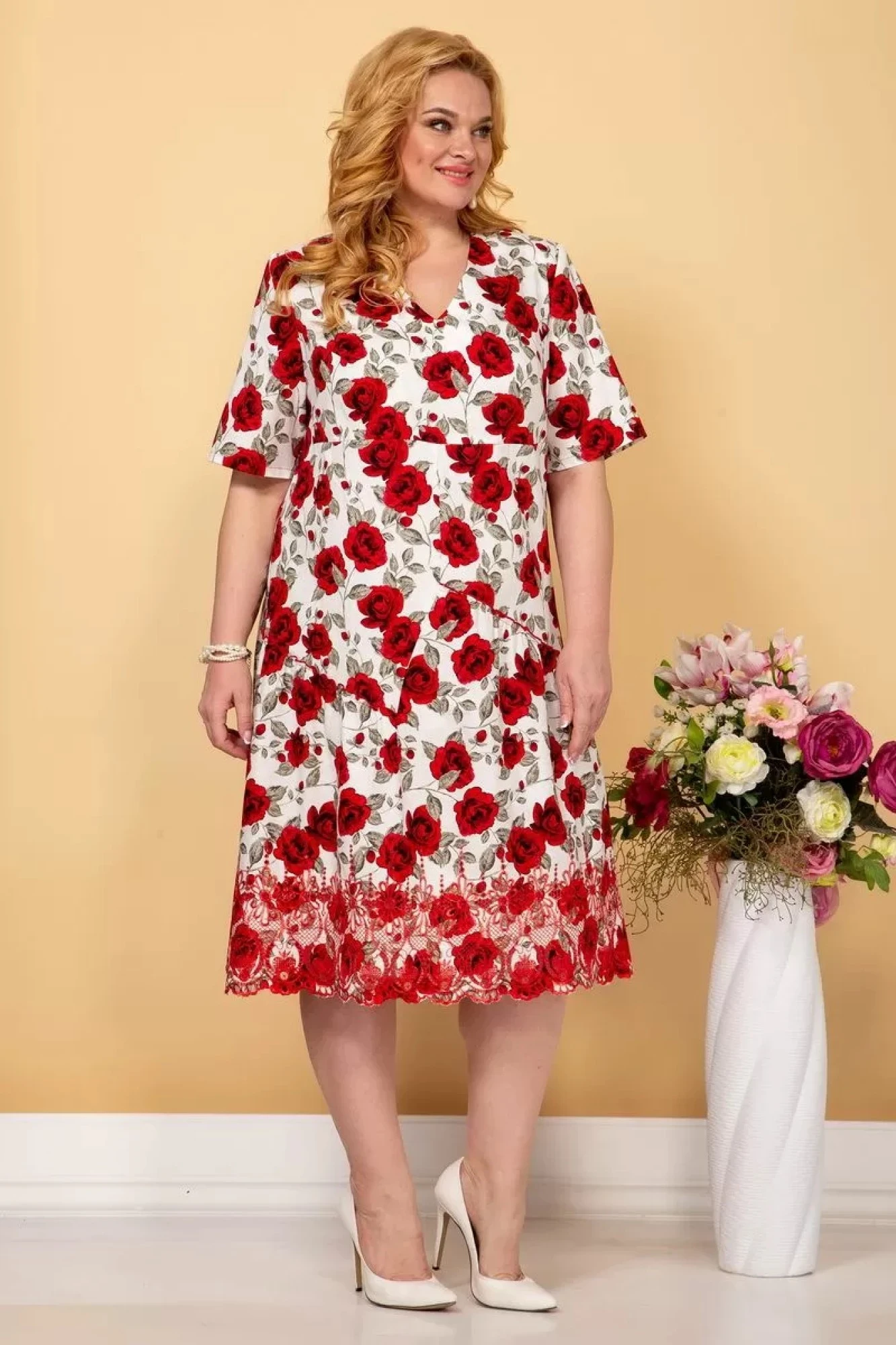 Платье женское выполнено из ткани хлопок дизайн розы по низу шитье. По переду подрезы, платье с плечевыми вставками, без молнии.