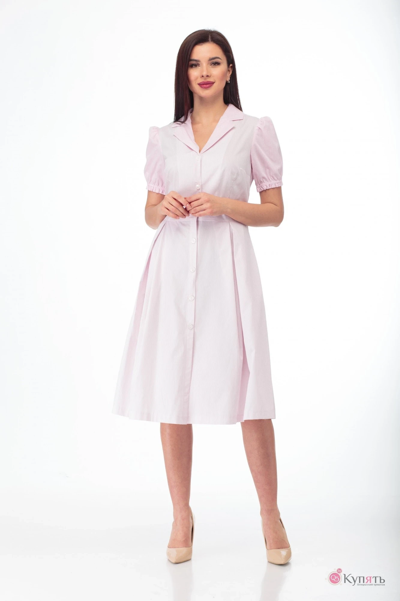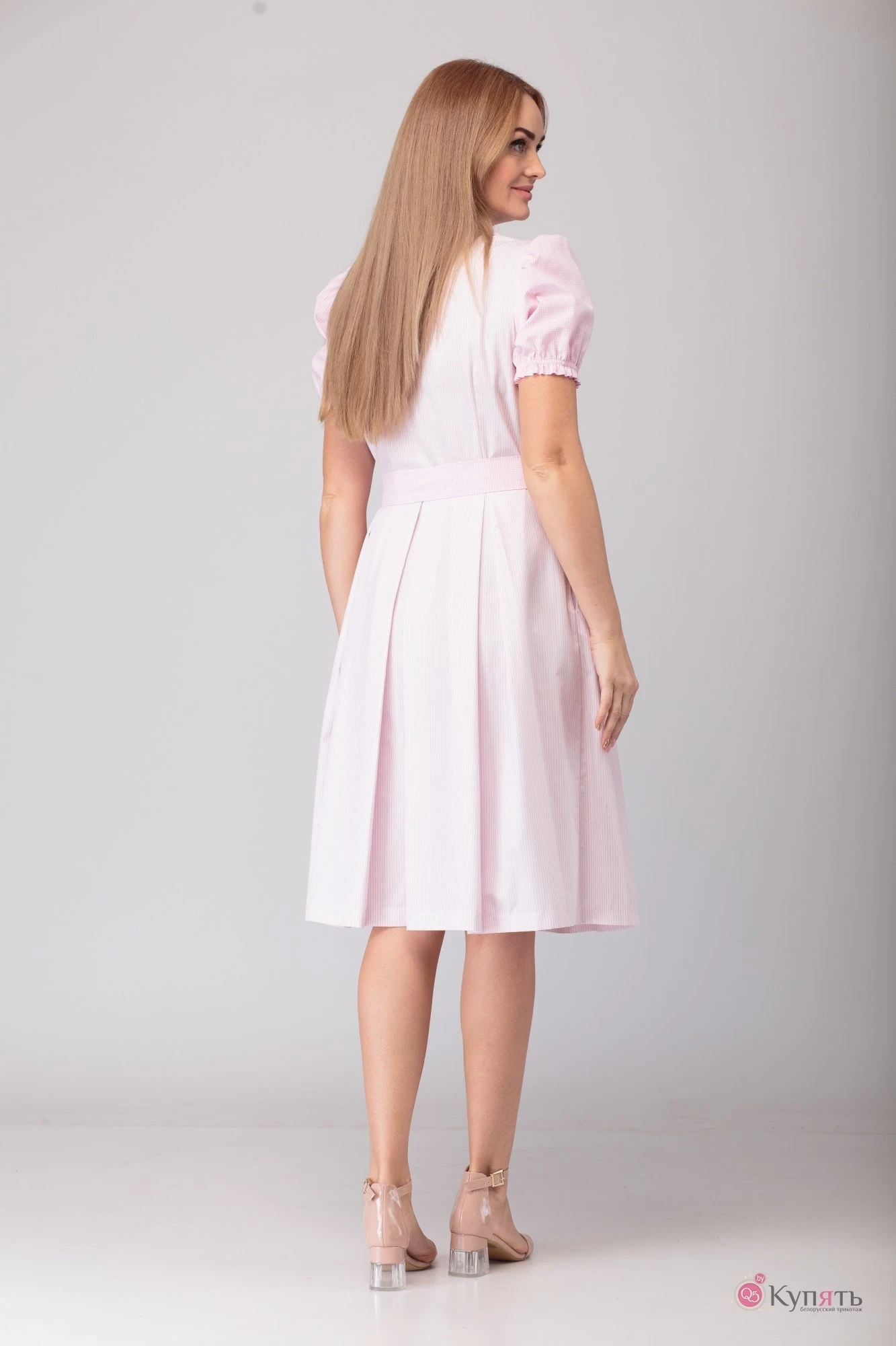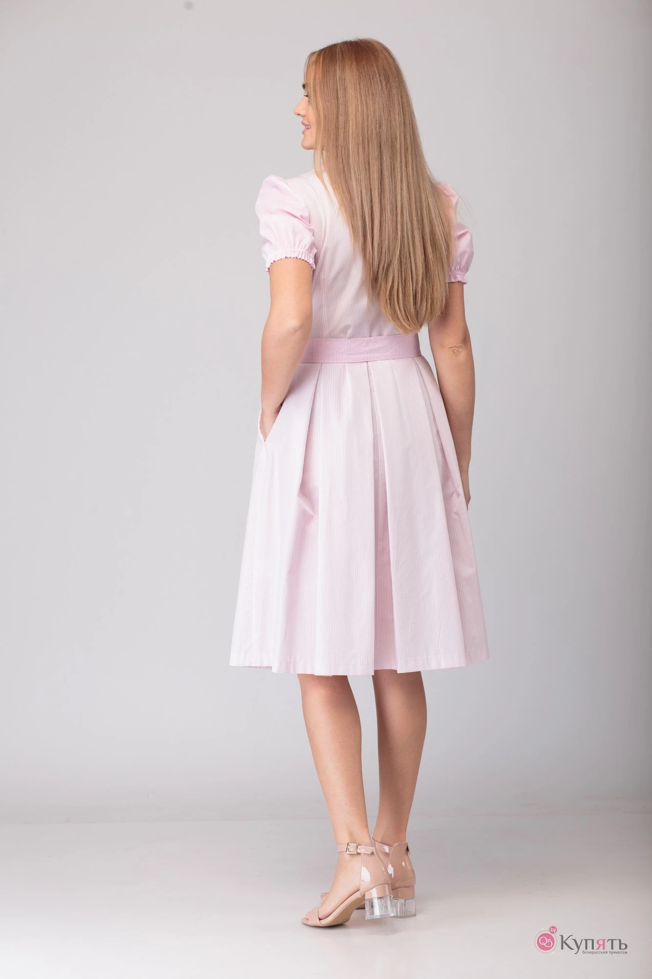 Отрезное по линии талии, с функциональной центральной застежкой по всей длине платья на пуговицы. Нижняя часть платья с двумя встречными складками по переду и спинке от линии талии!
